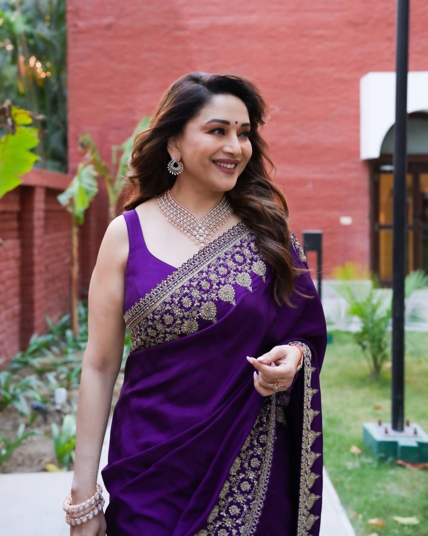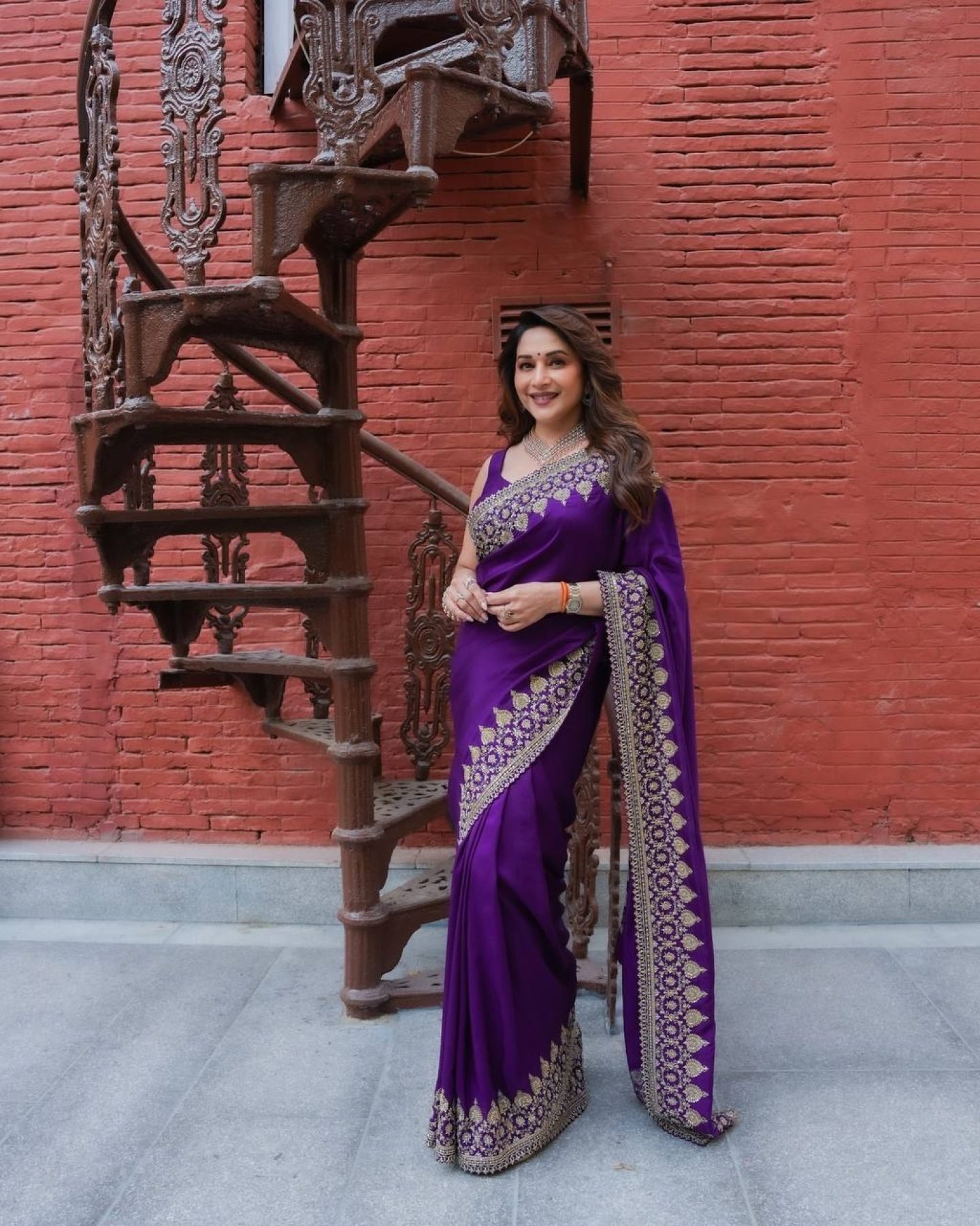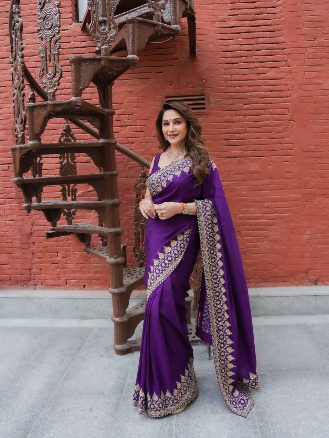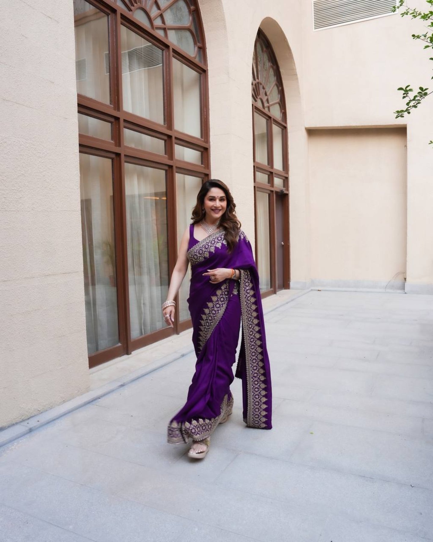 Madhuri Dixit Wearing Rangoli Silk Saree with Sequence Zari Embroidery