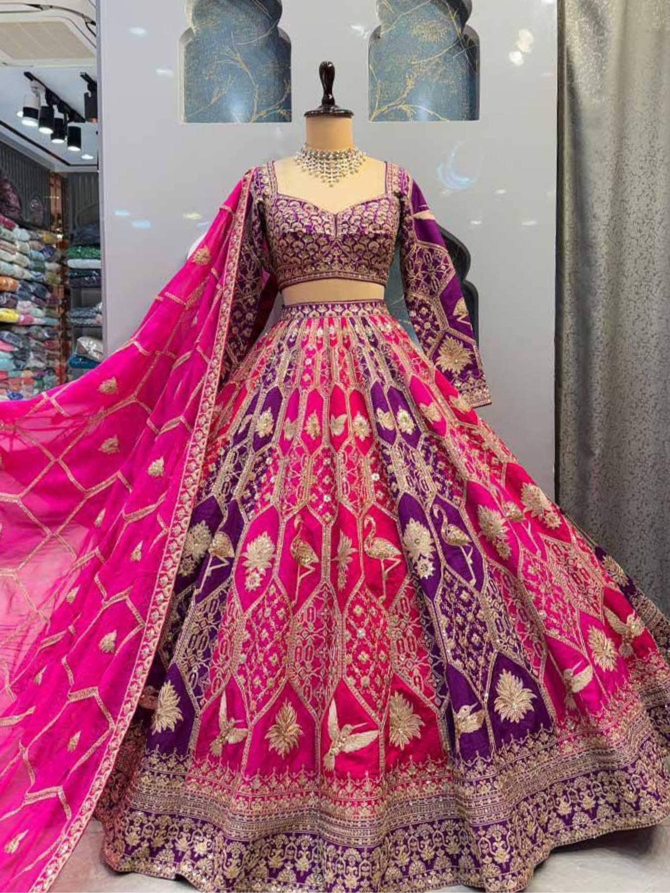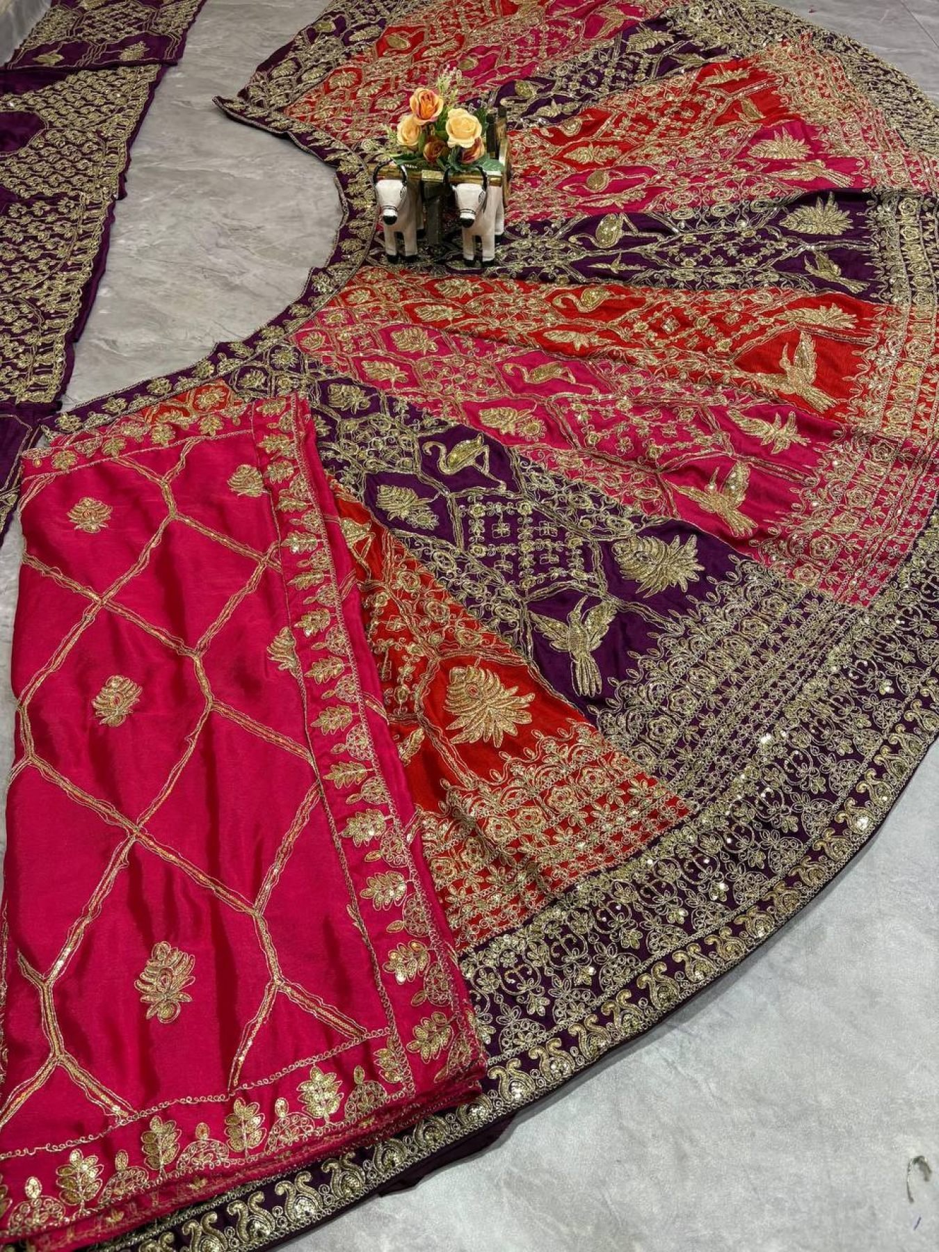 Magenta Chinon Silk Wedding Lehenga with Heavy Embroidery Exclusive Export Edition