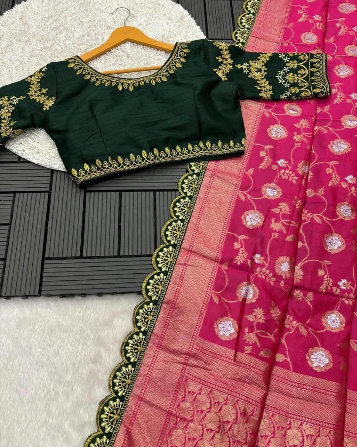 Magical Yellow Green Combination Premium Zari Mina Banarasi Silk Saree Best Price
