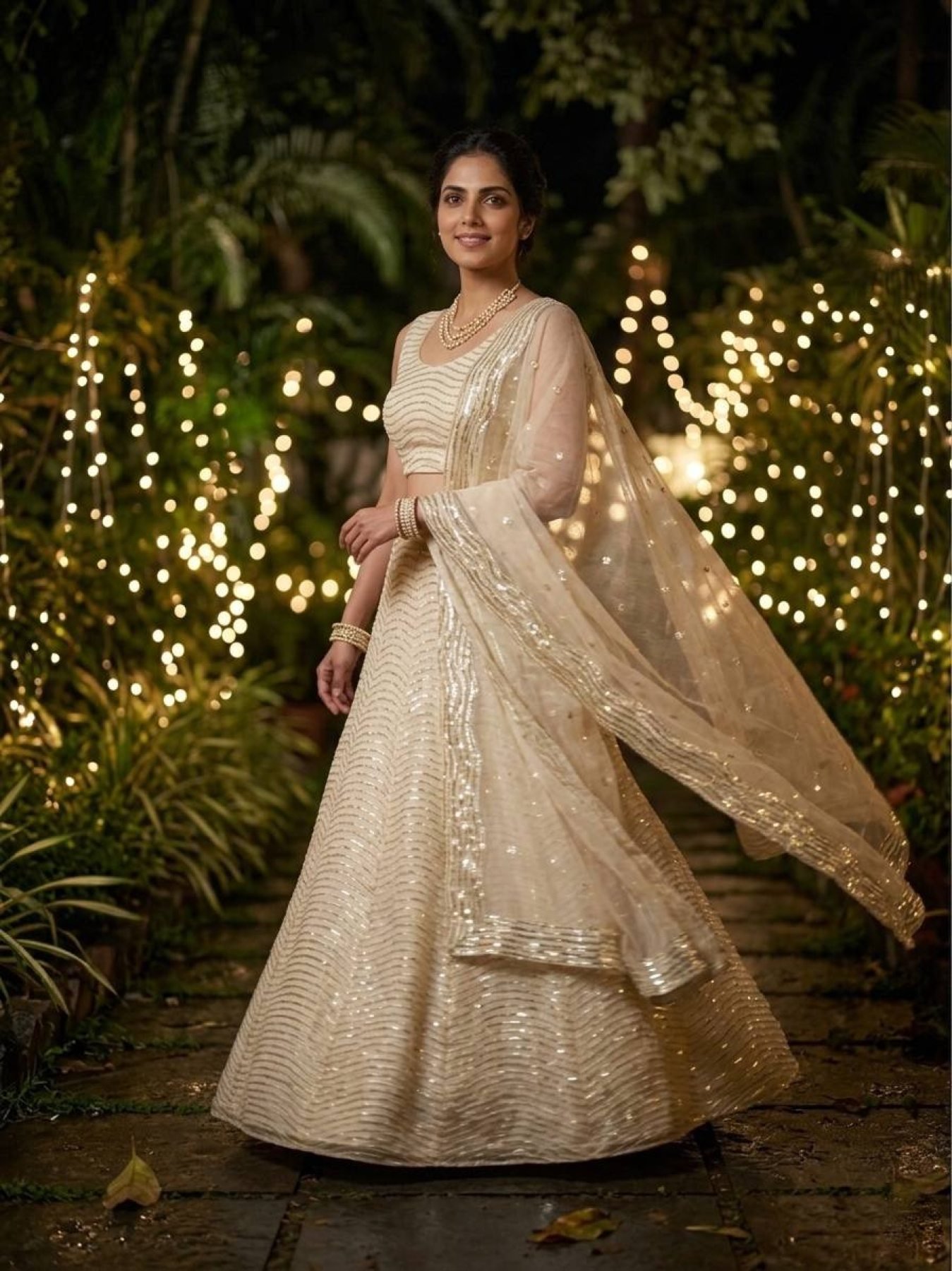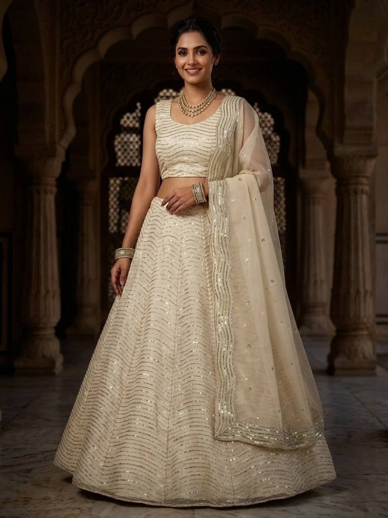 Magnetic Off White Organza Silk Lehenga with Sequins Work for Wedding Wear