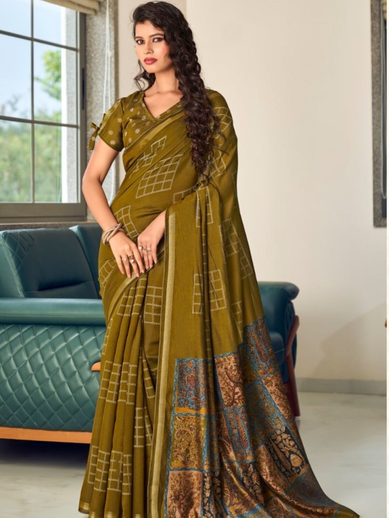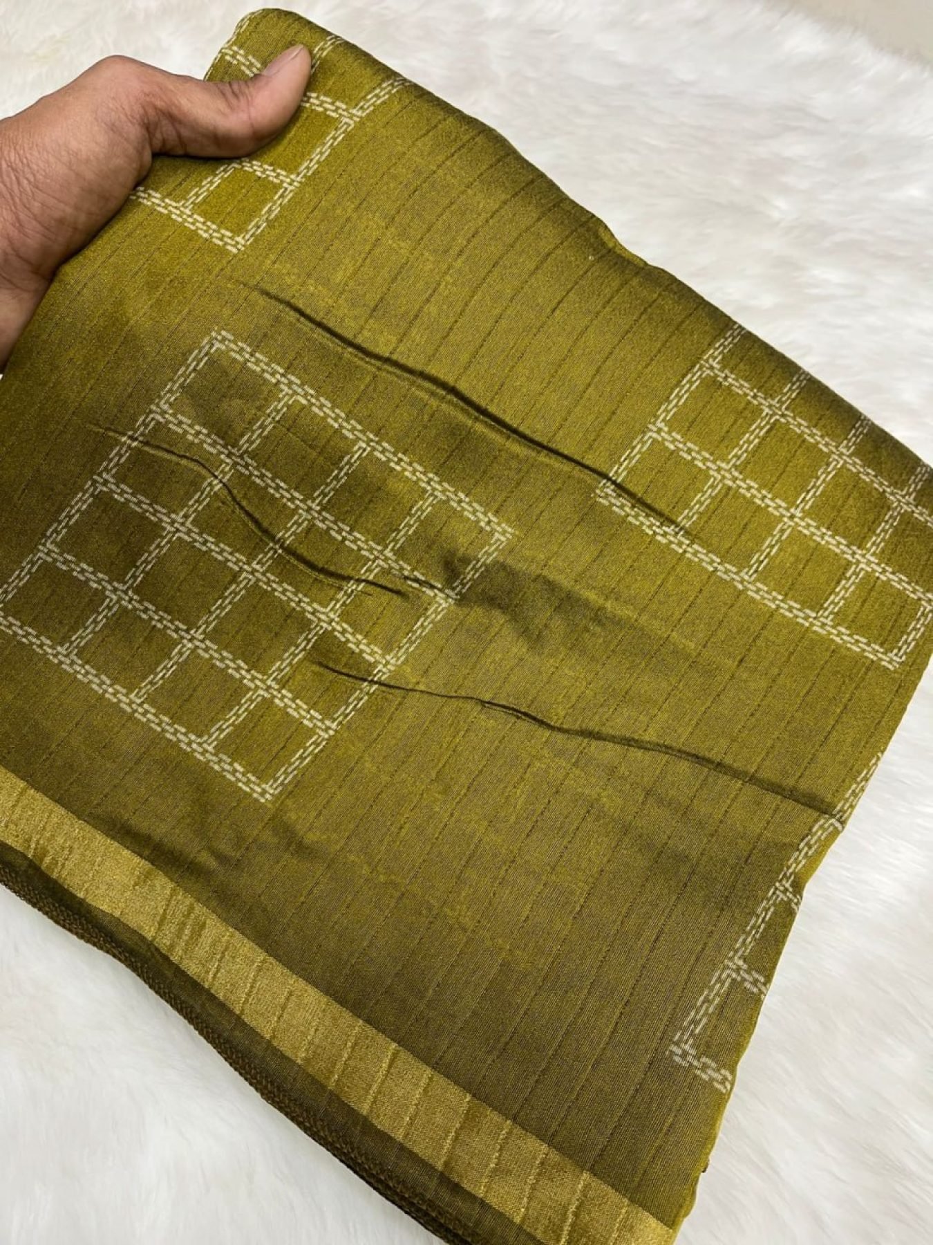 Magnetic Olive Green Latest Cotton Silk Saree with Crush Pattern for Women