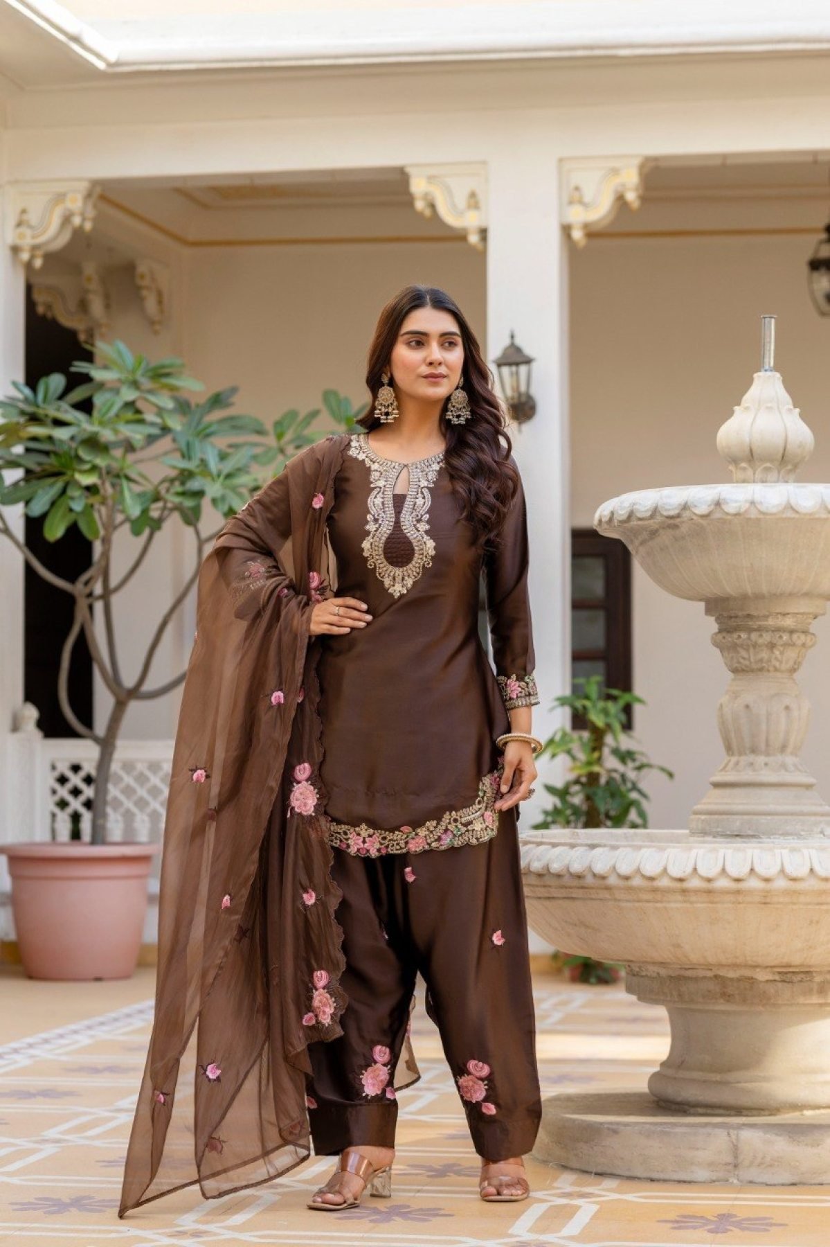 Majestic Brown Trendy Patiala Suit Set for Women Ethnic Collection