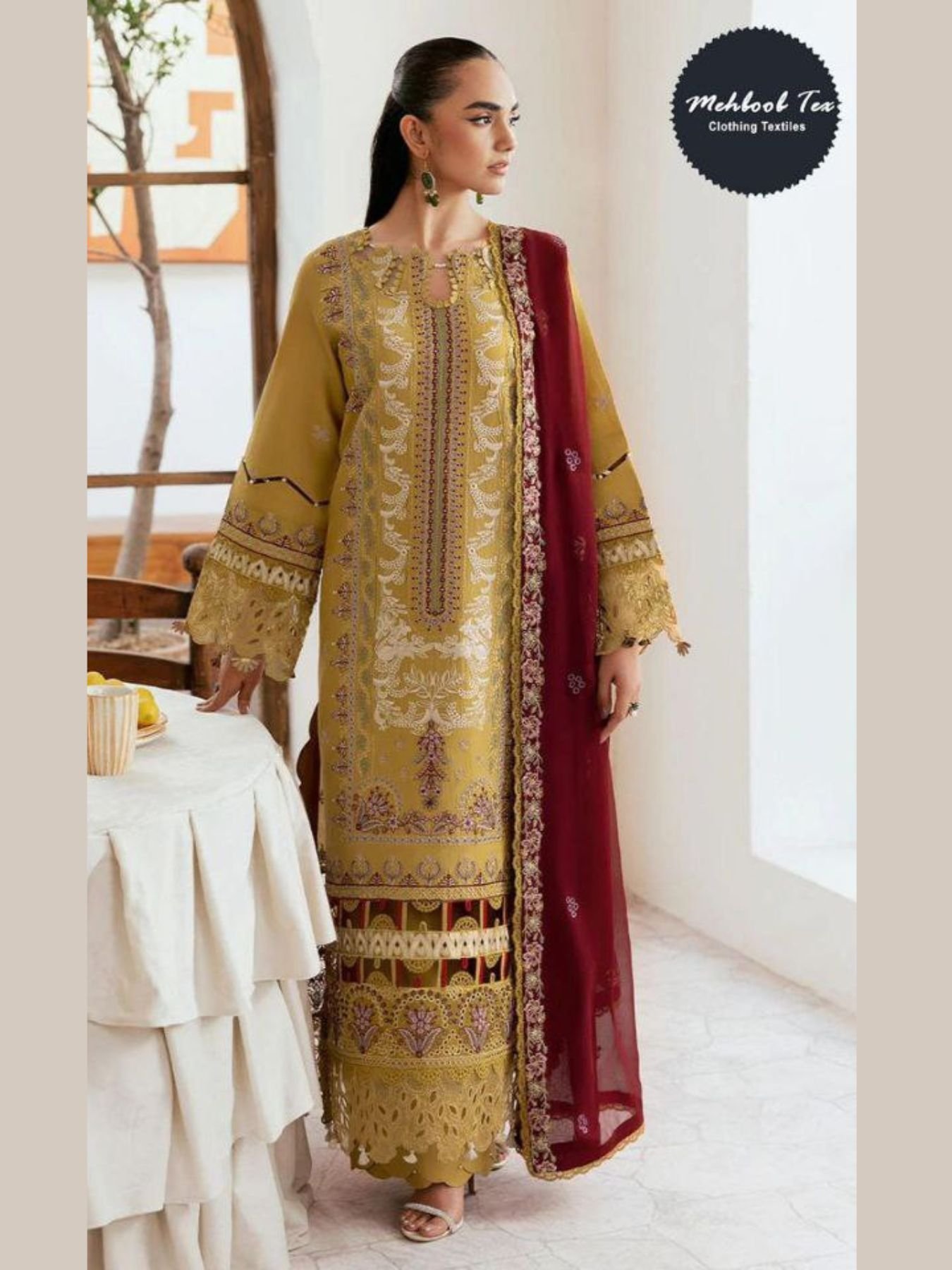 Mehboob Design 1753 Cotton Embroidered Top with Semi Lawn Bottom and Dupatta for Festivel Wear