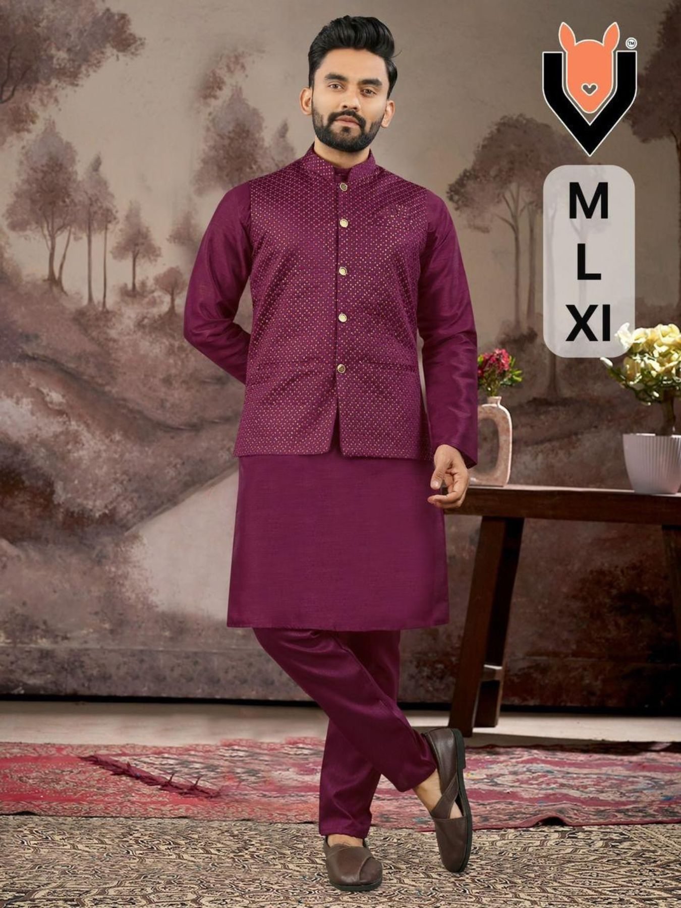Mens Ethnic Wear Koti Set Heavy Silk Kurta Pajama Set with Sequins Work Best Seller