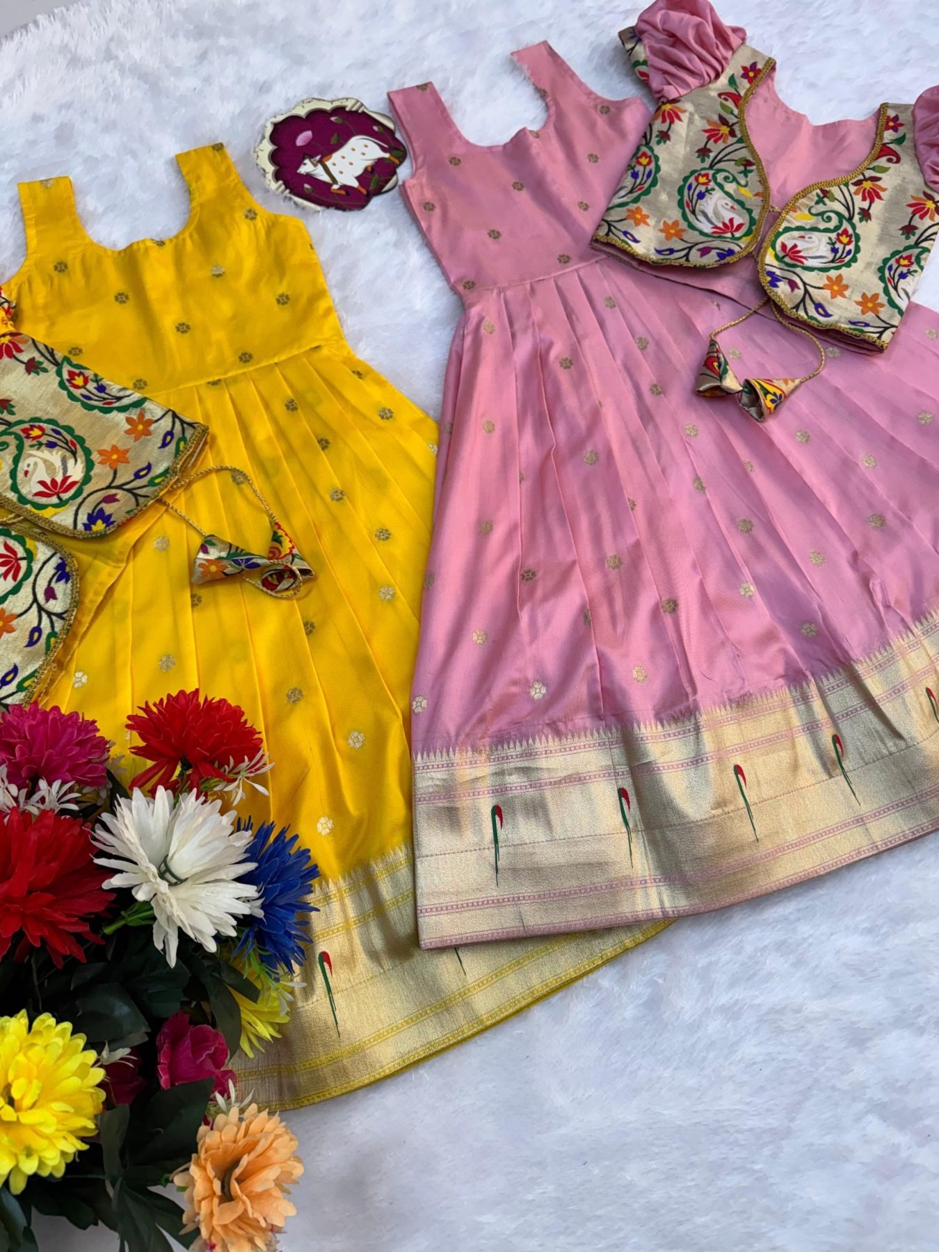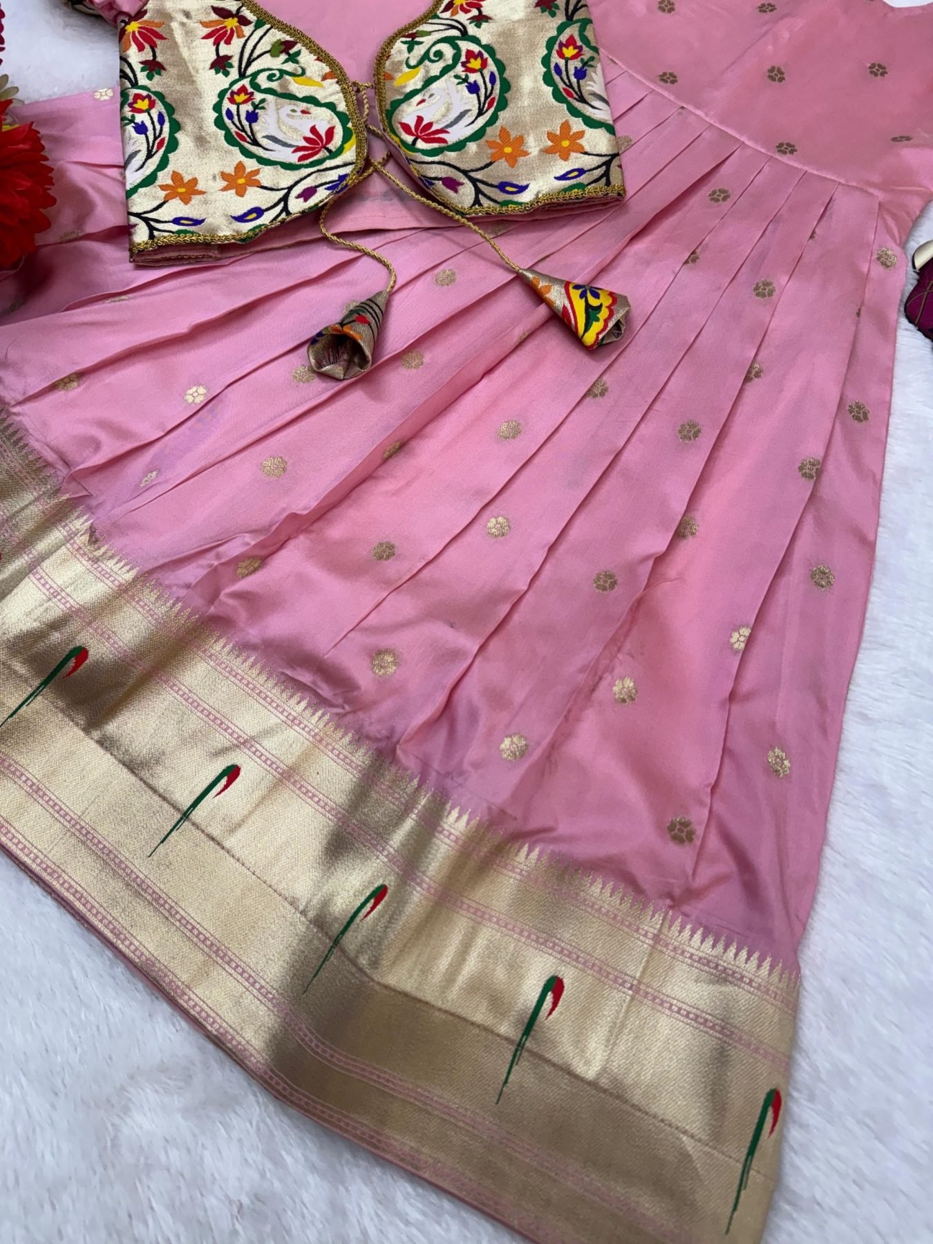 Mesmerizing Pink Girls Traditional Paithani Dress for Wedding and Festive Wear