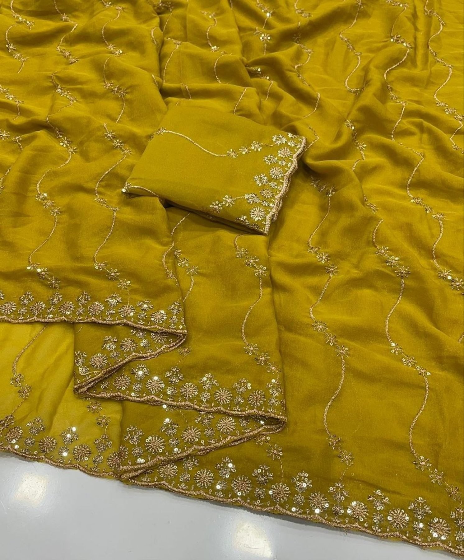 Stylish star georgette saree featuring all-over embroidered sequins work paired with heavy embroidered blouse. Perfect for festive and party occasions.