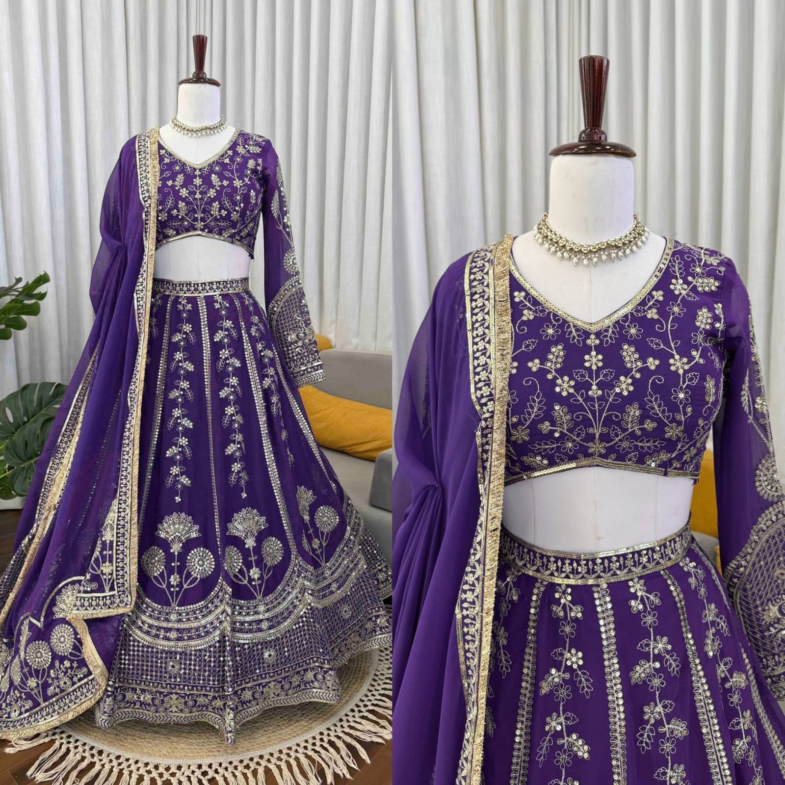 Midnight Royal Purple Georgette Bridal Lehenga Choli with Dupatta