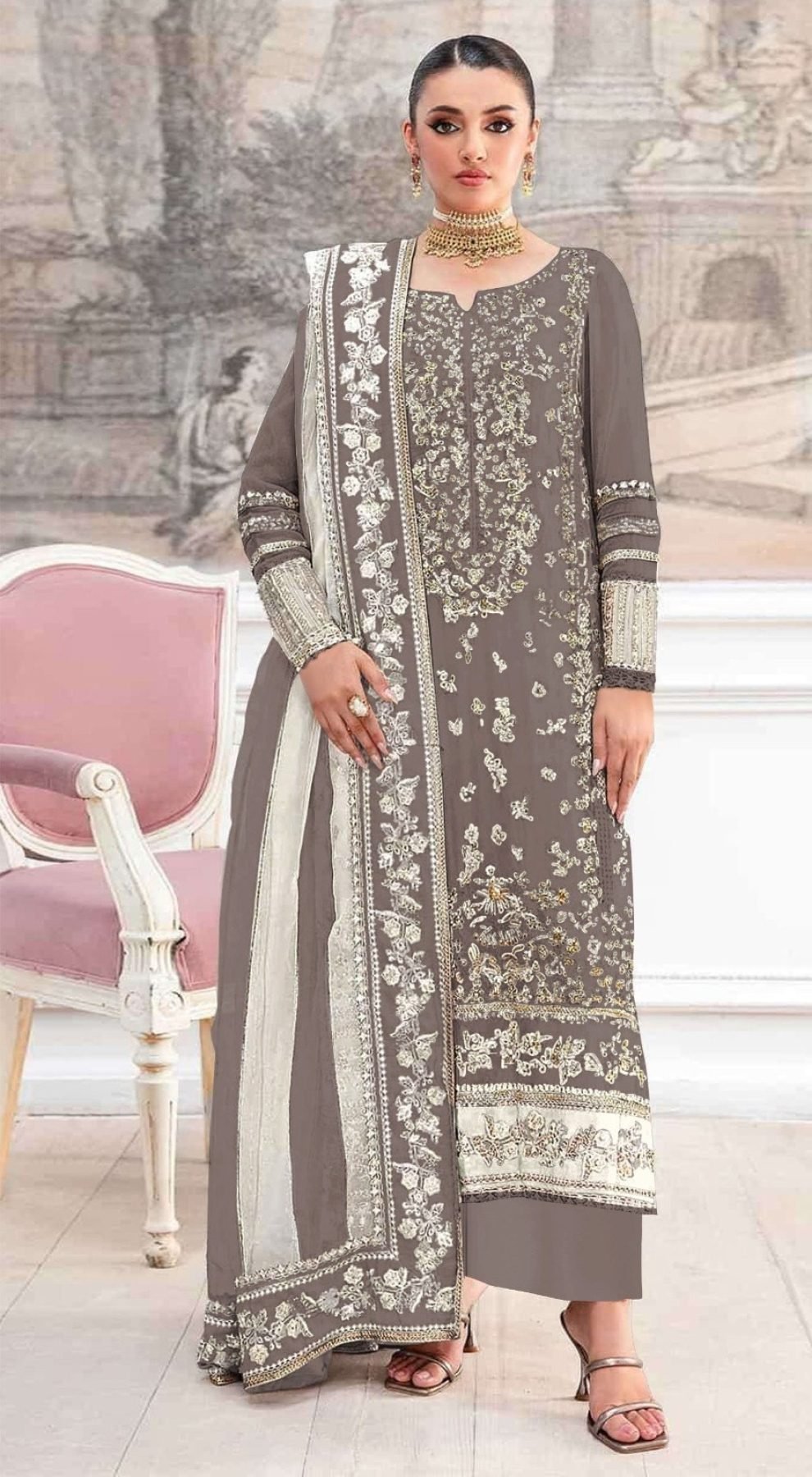 Modern Grey Designer Pakistani Salwar Suit With Dupatta For Party Wear
