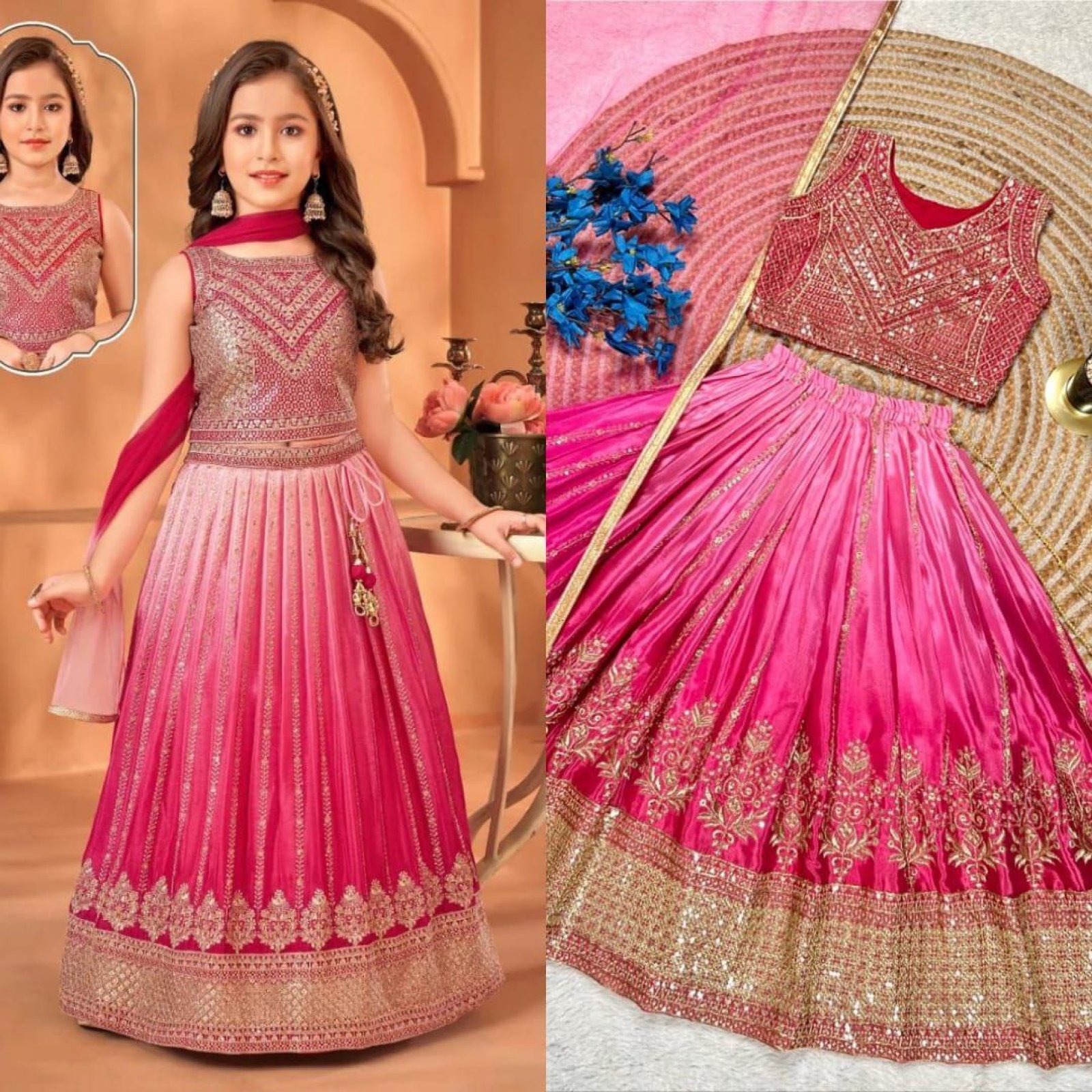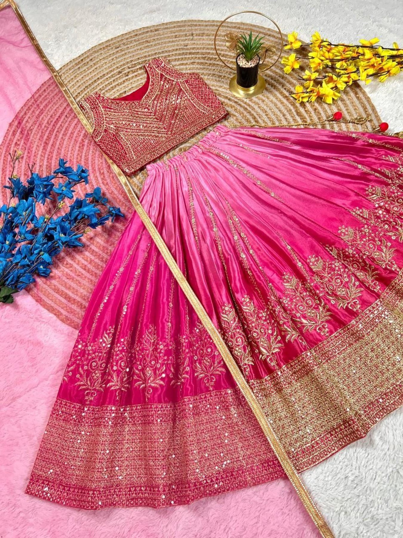 Modern Pink Elegant Chinon Silk Lehenga Set with Sequins Embroidery