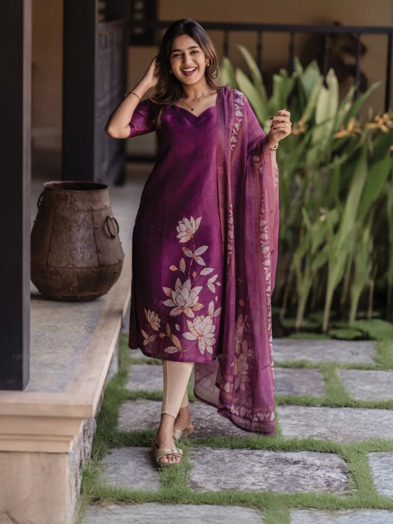 Modern Zarna Silk Kurti Set with Matching Printed Dupatta at Wholesale Rate