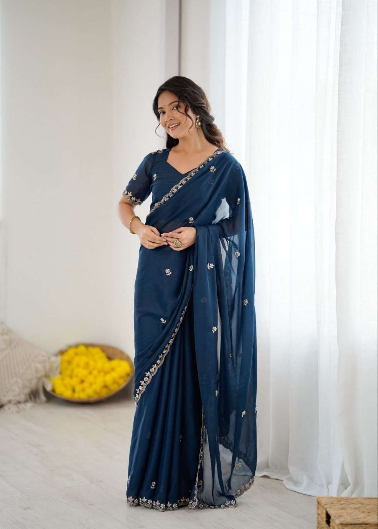 Drape yourself in pure sophistication with our Soft Star Georgette Silk Saree, beautifully adorned with delicate embroidery and moti (pearl) work. This elegant ensemble adds a graceful shimmer and is perfect for festive occasions, weddings, and celebrations.