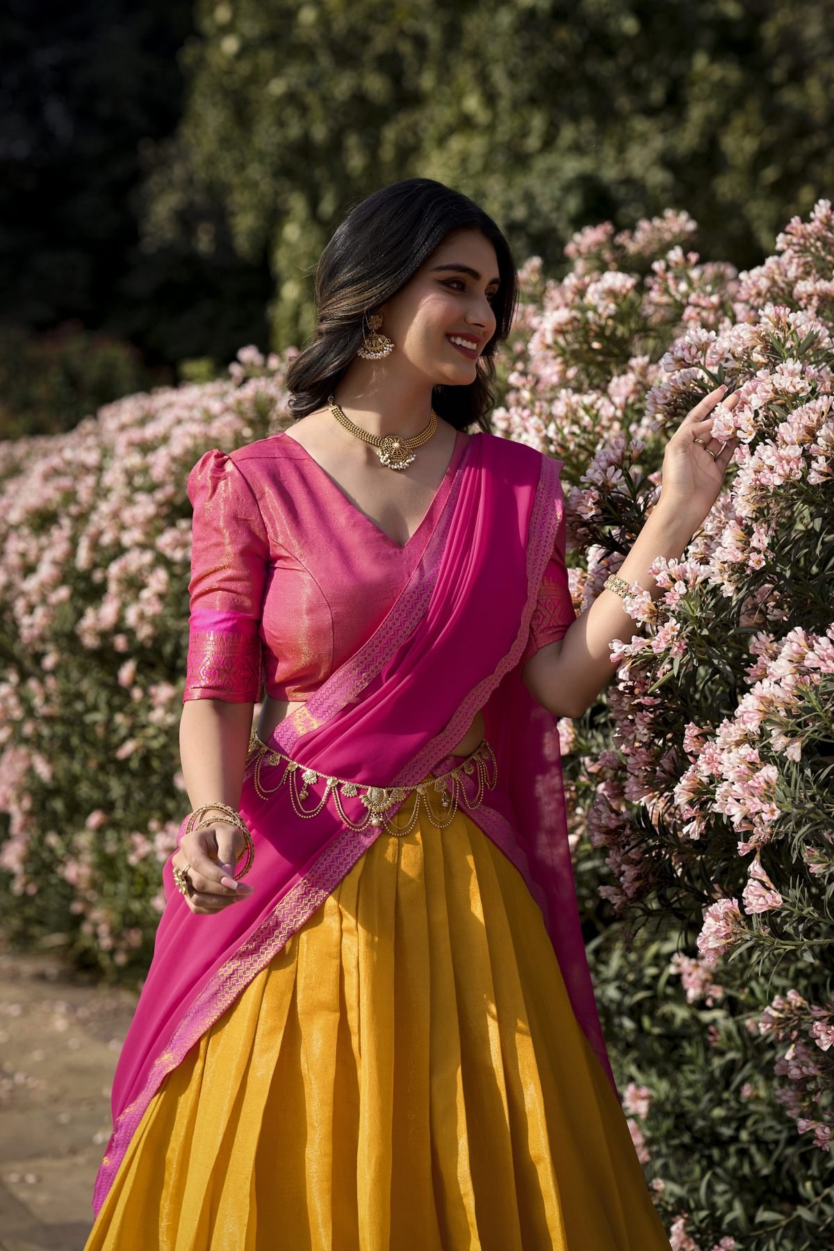 Mustard Zari Work Art Silk Lehenga with Georgette Lace Dupatta Festive Celebrations