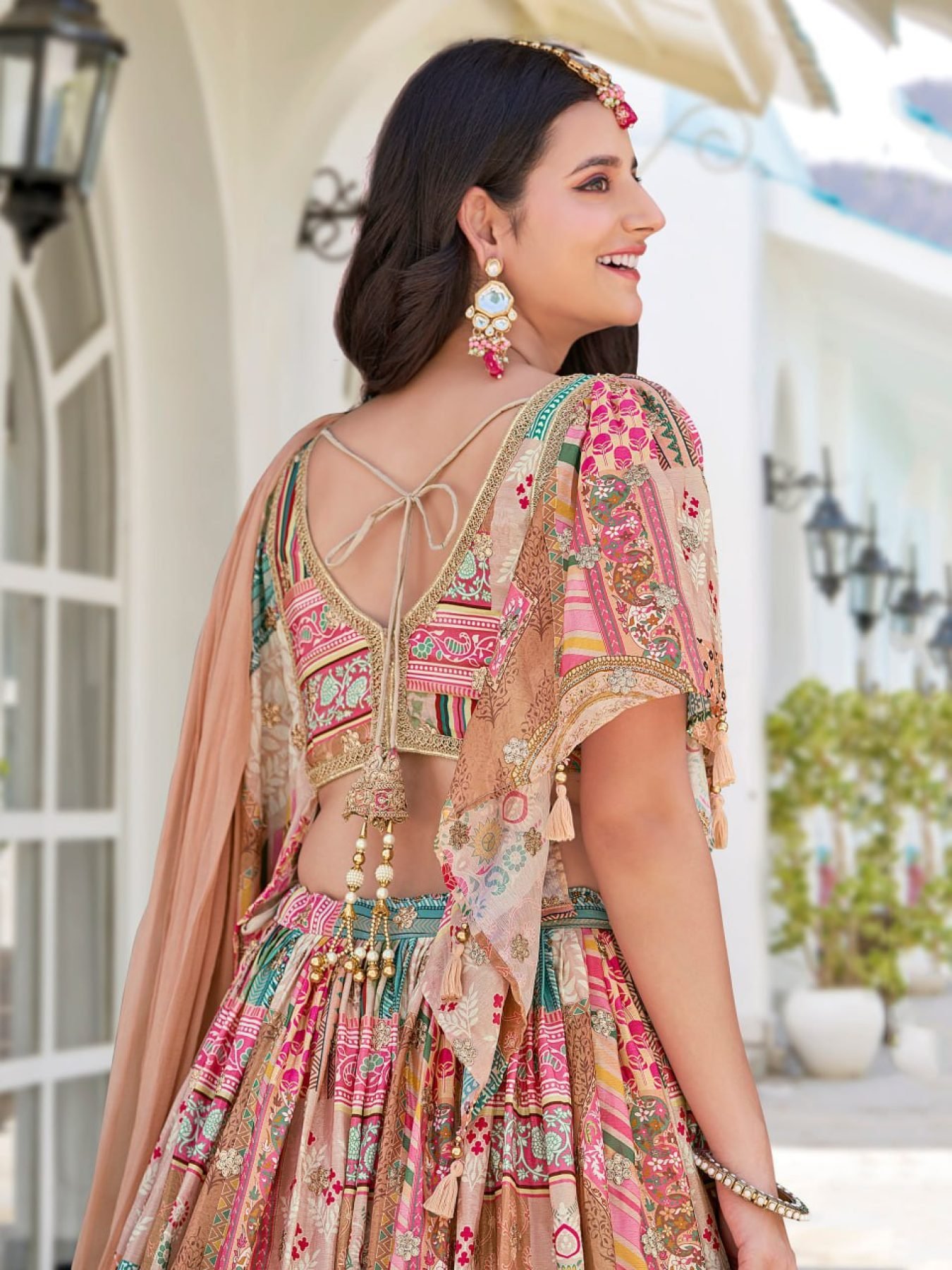 Muted Peach Embroidered Lehenga in Chinnon Silk Perfect for Destination Weddings