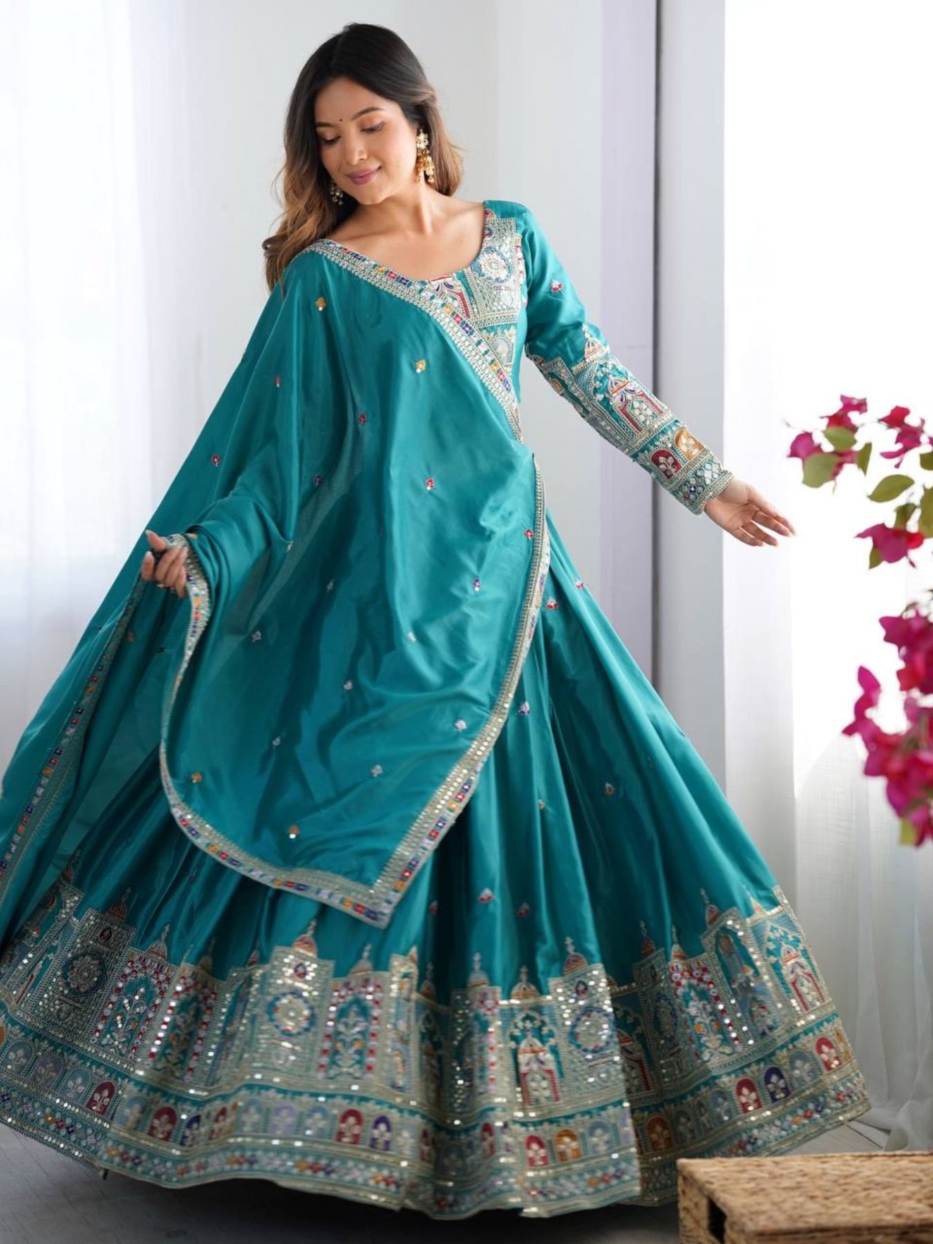 Work: Coding Dori, Thread, and Sequins Embroidery with Four-Side Lace Border