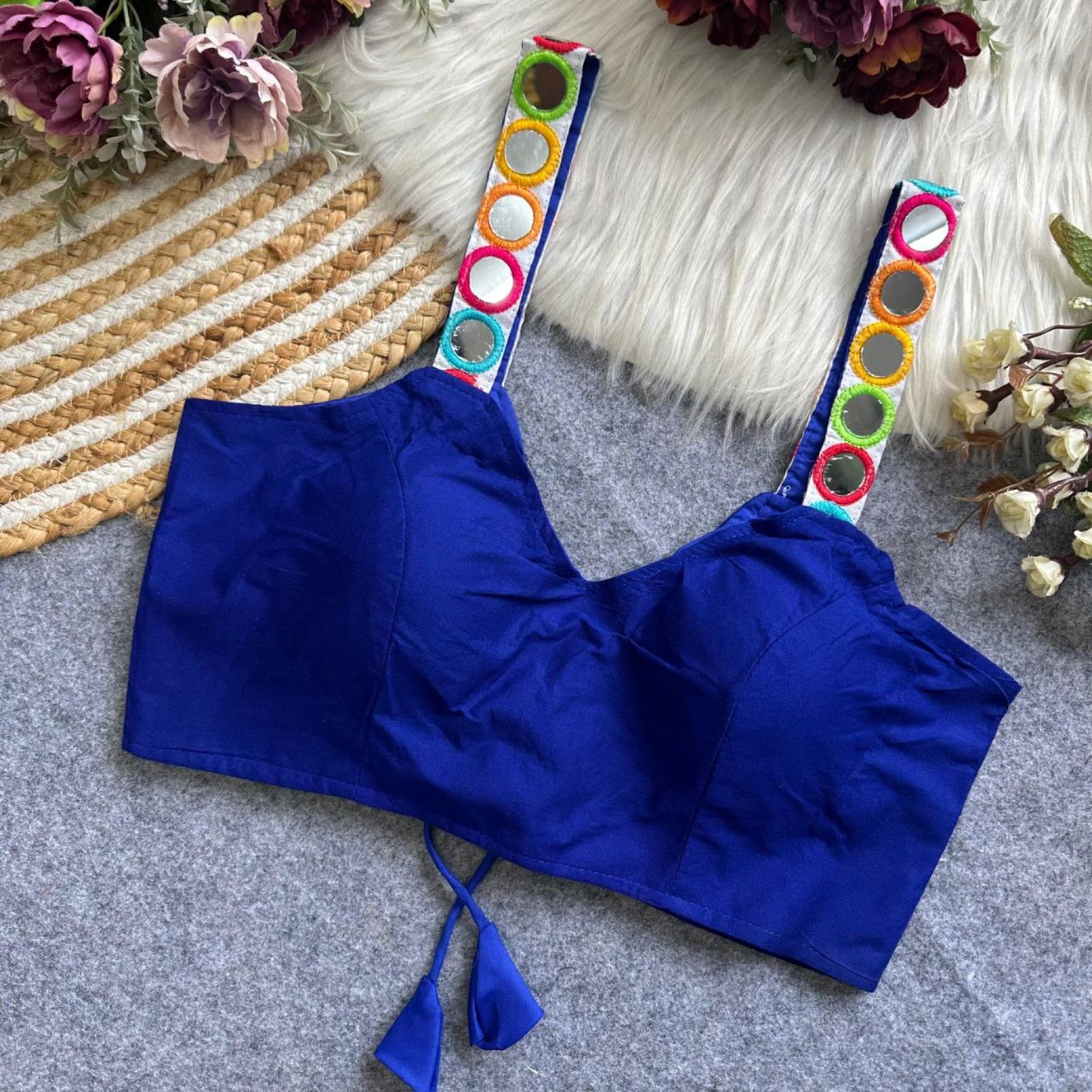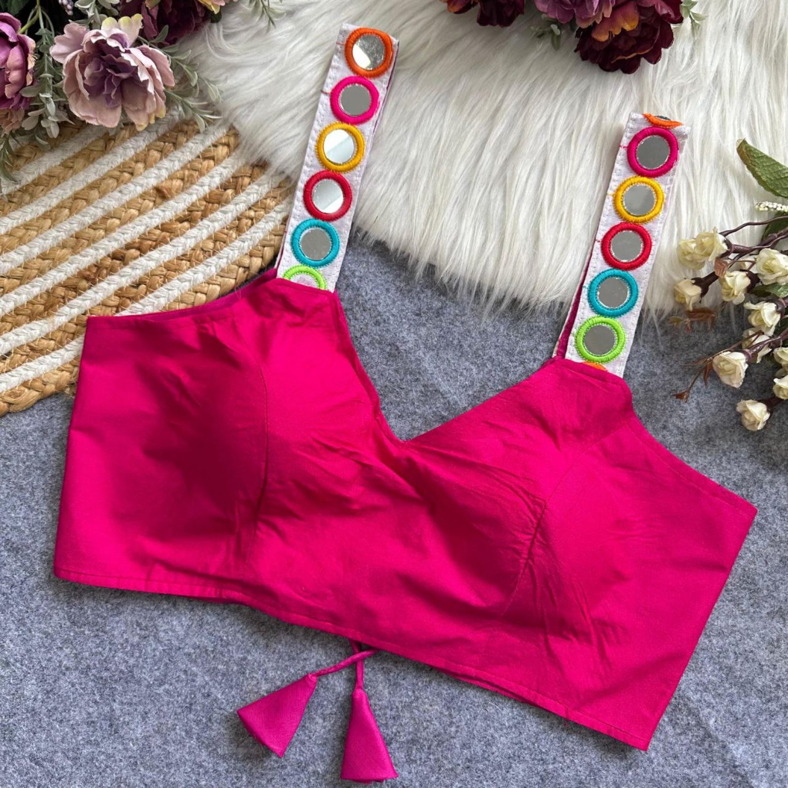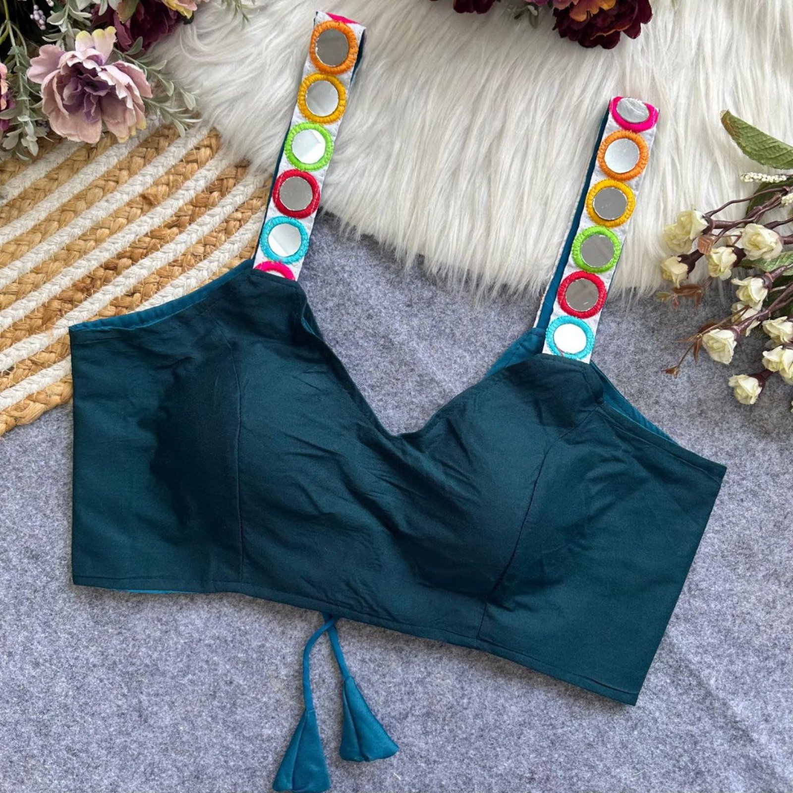 Make this festive season extra special with our Navratri Special Designer Blouse, featuring stunning real mirror work and fine craftsmanship. Crafted from premium rayon cotton with heavy stitching and padding for comfort, this blouse is perfect for Garba nights, festive parties, and traditional occasions. Available in 9 vibrant colors to match any outfit.