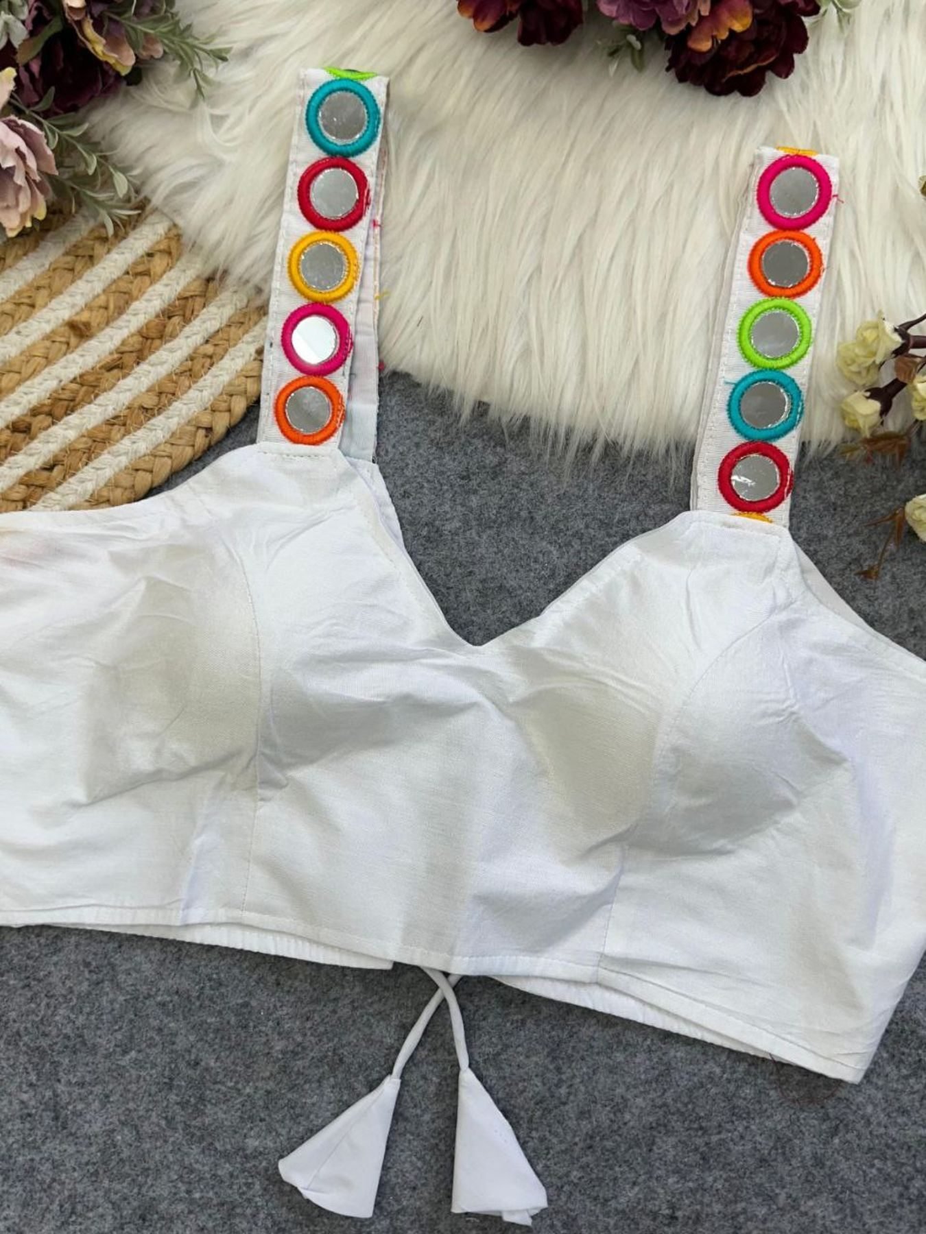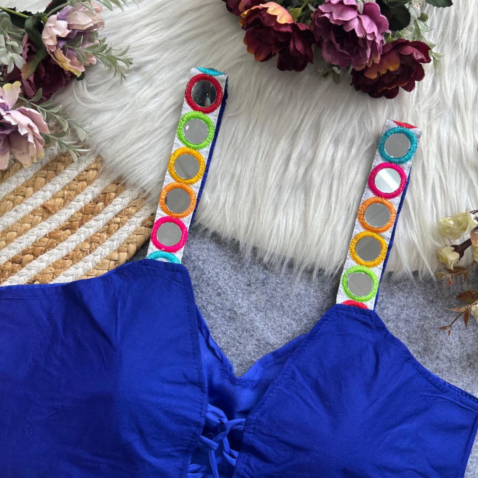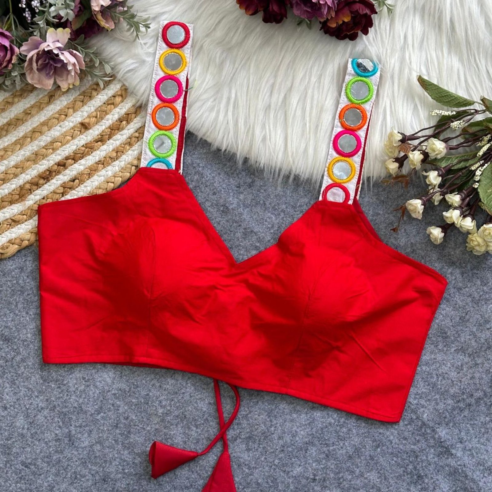 Make this festive season extra special with our Navratri Special Designer Blouse, featuring stunning real mirror work and fine craftsmanship. Crafted from premium rayon cotton with heavy stitching and padding for comfort, this blouse is perfect for Garba nights, festive parties, and traditional occasions. Available in 9 vibrant colors to match any outfit.