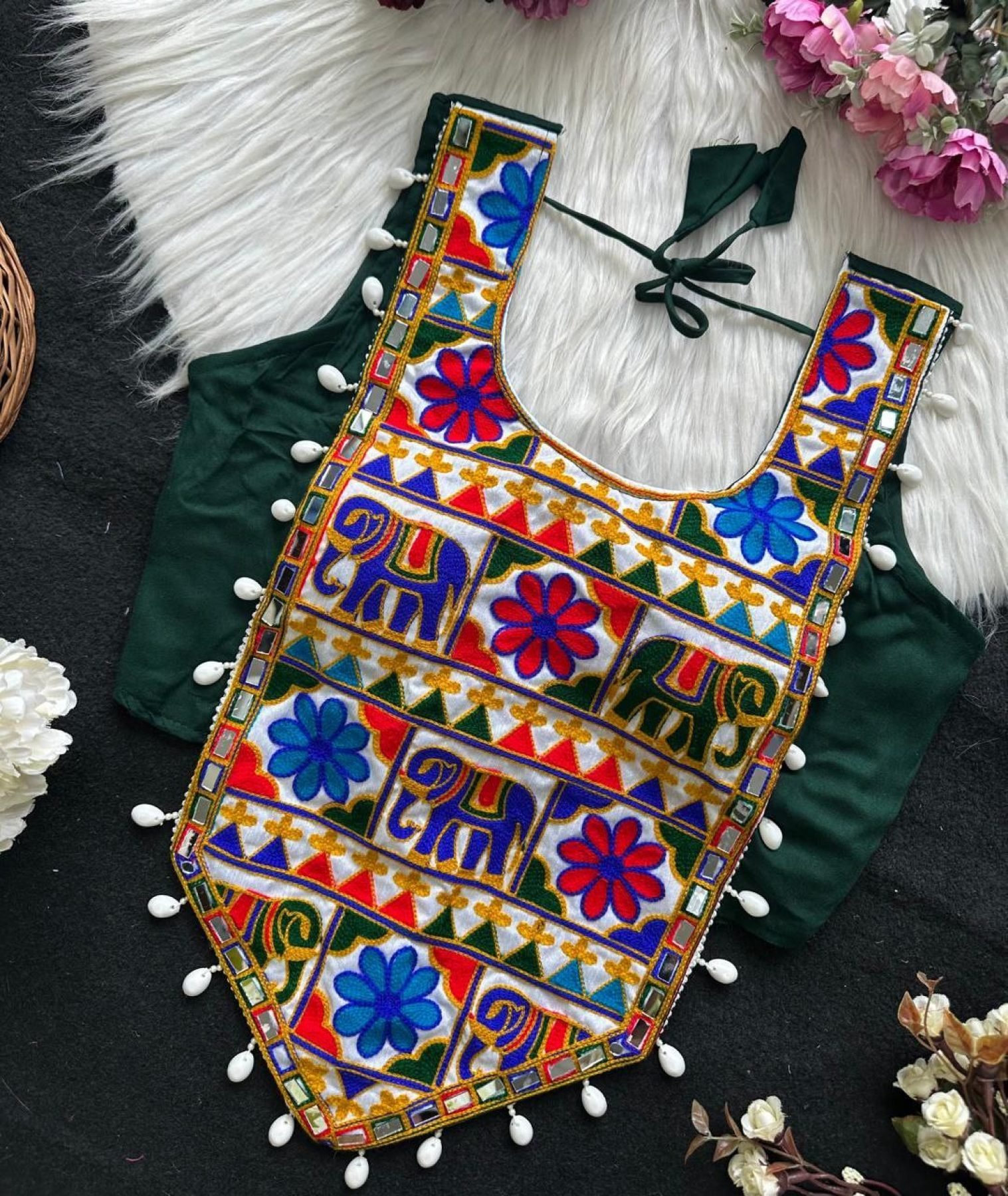 Navratri Special Halter Neck Blouse with Real Shell and Embroidery Work Dandiya Special