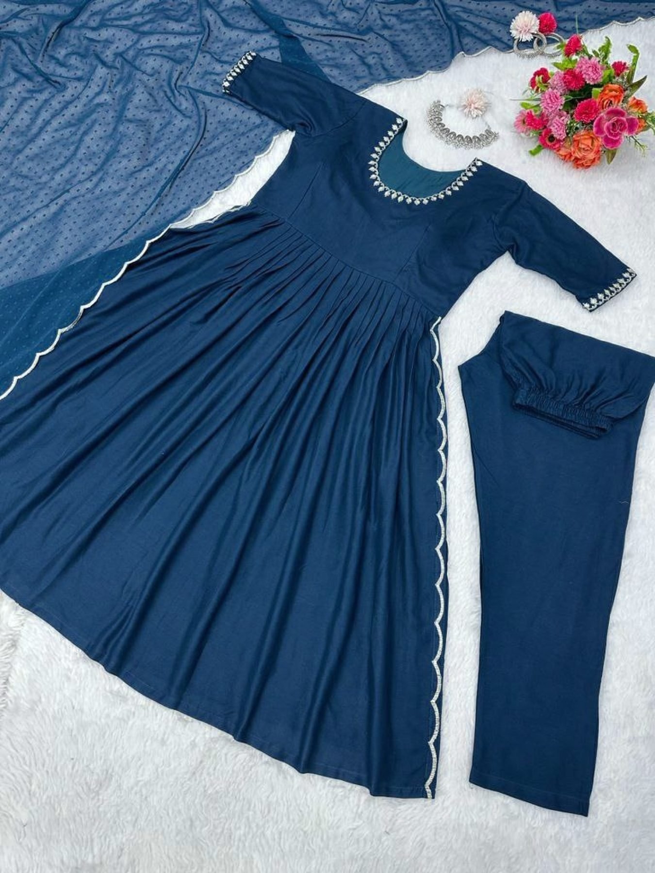 Nayra Cut Rayon Kurti Pant Dupatta With Thred Work