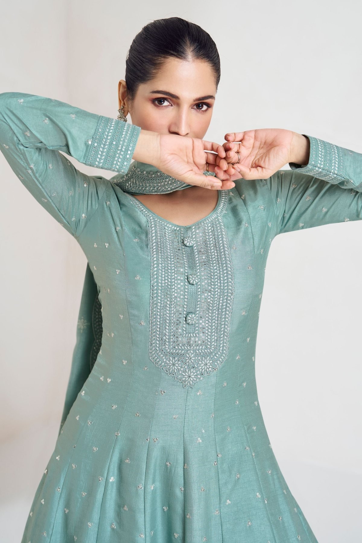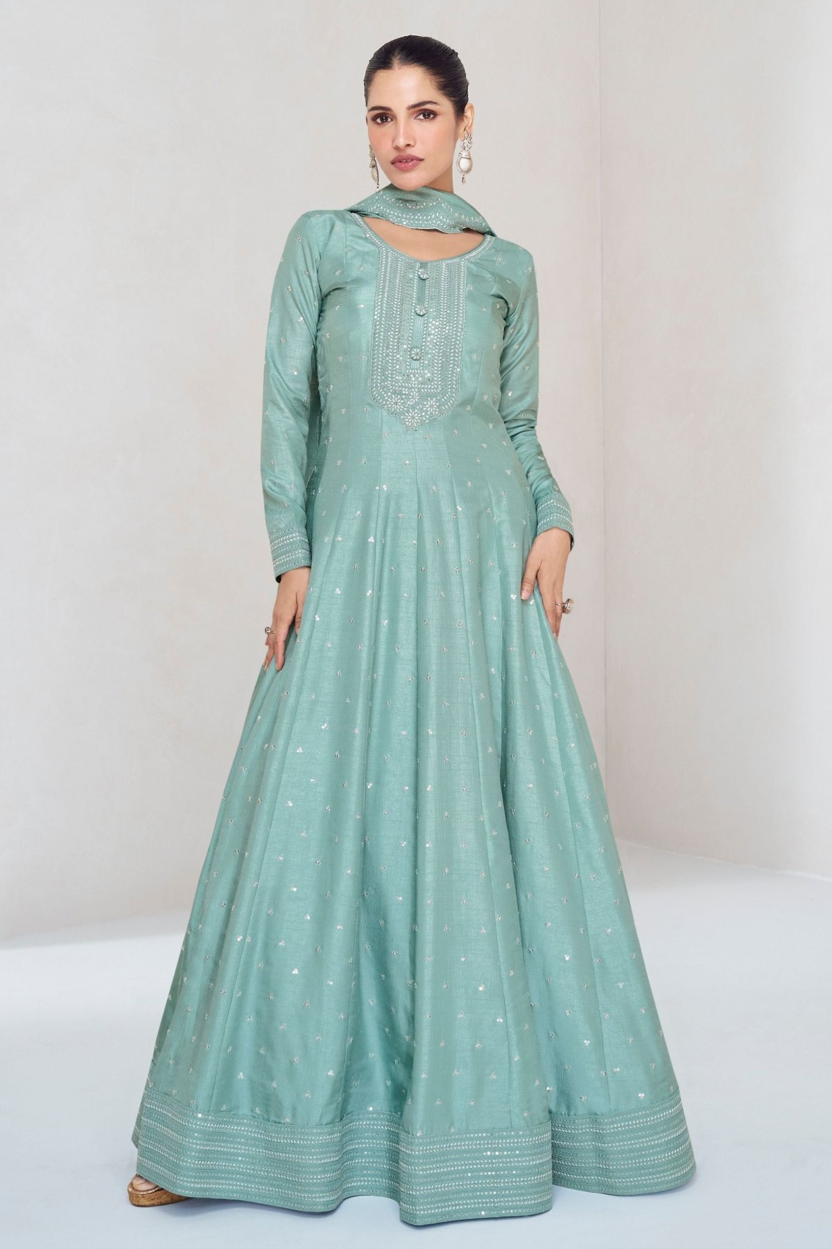 New Anarkali Gown Suit For Indian Festivals Weddings Embroidery Work