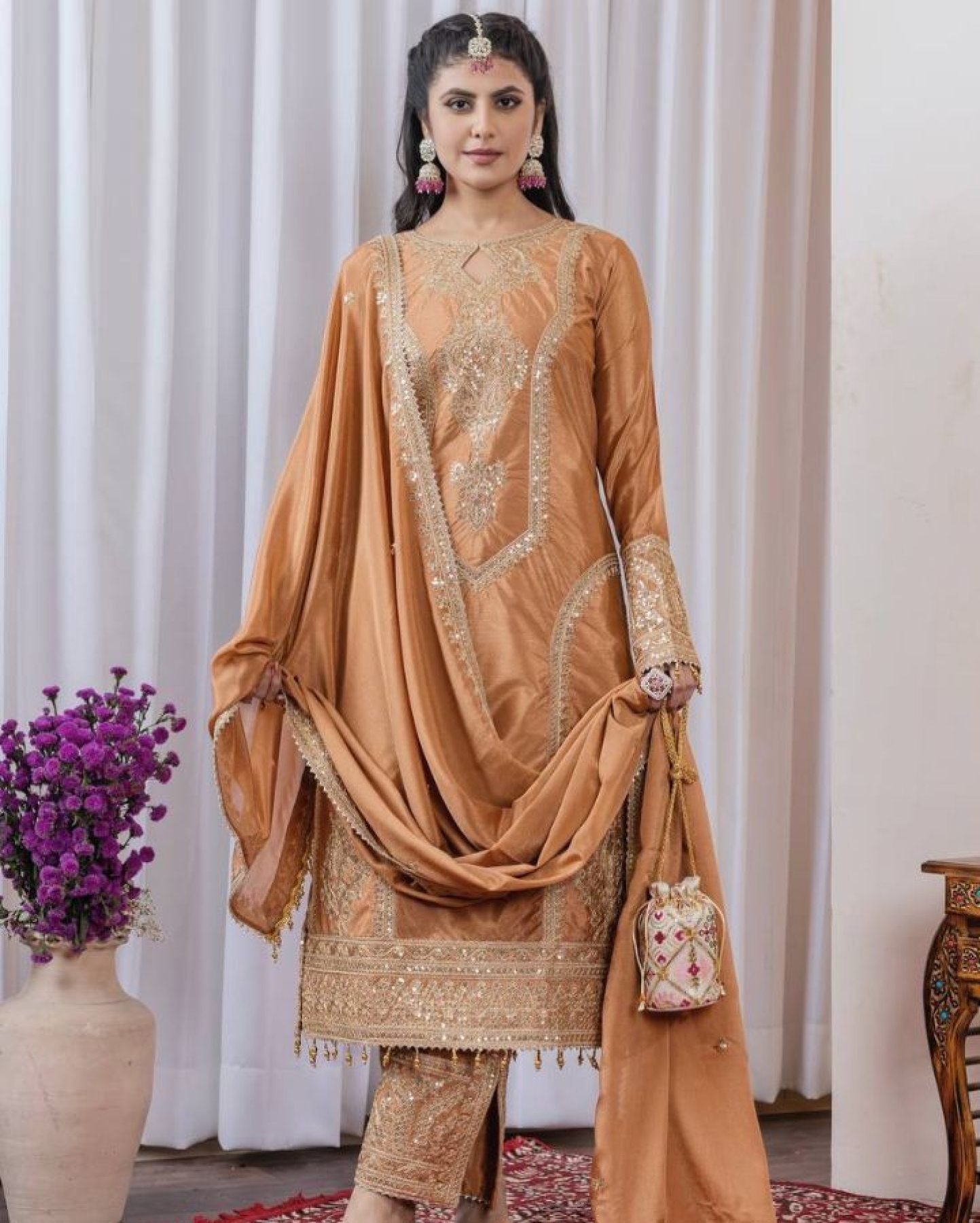 Dupatta Fabric:Heavy Chinon Silk With Embroidery 3 mm Sequence & Coding Dori Work With Fancy Latkan