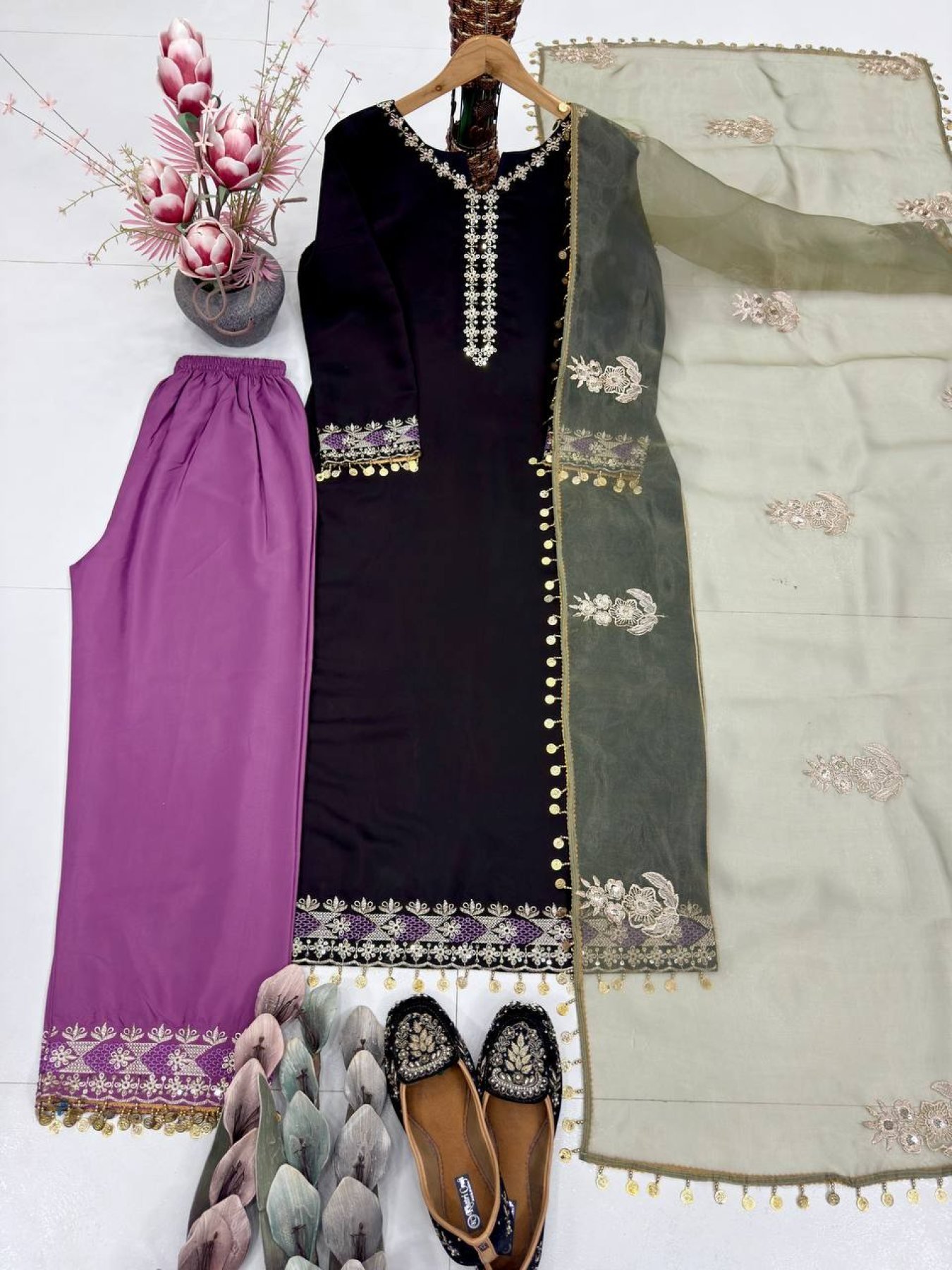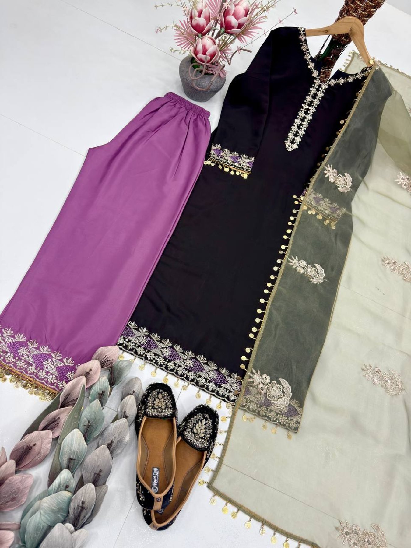 New Designer Eid Special Heavy Embroidery Sequence Work 3 Piece Suit Set Wholesale Rate Eid Ramadan