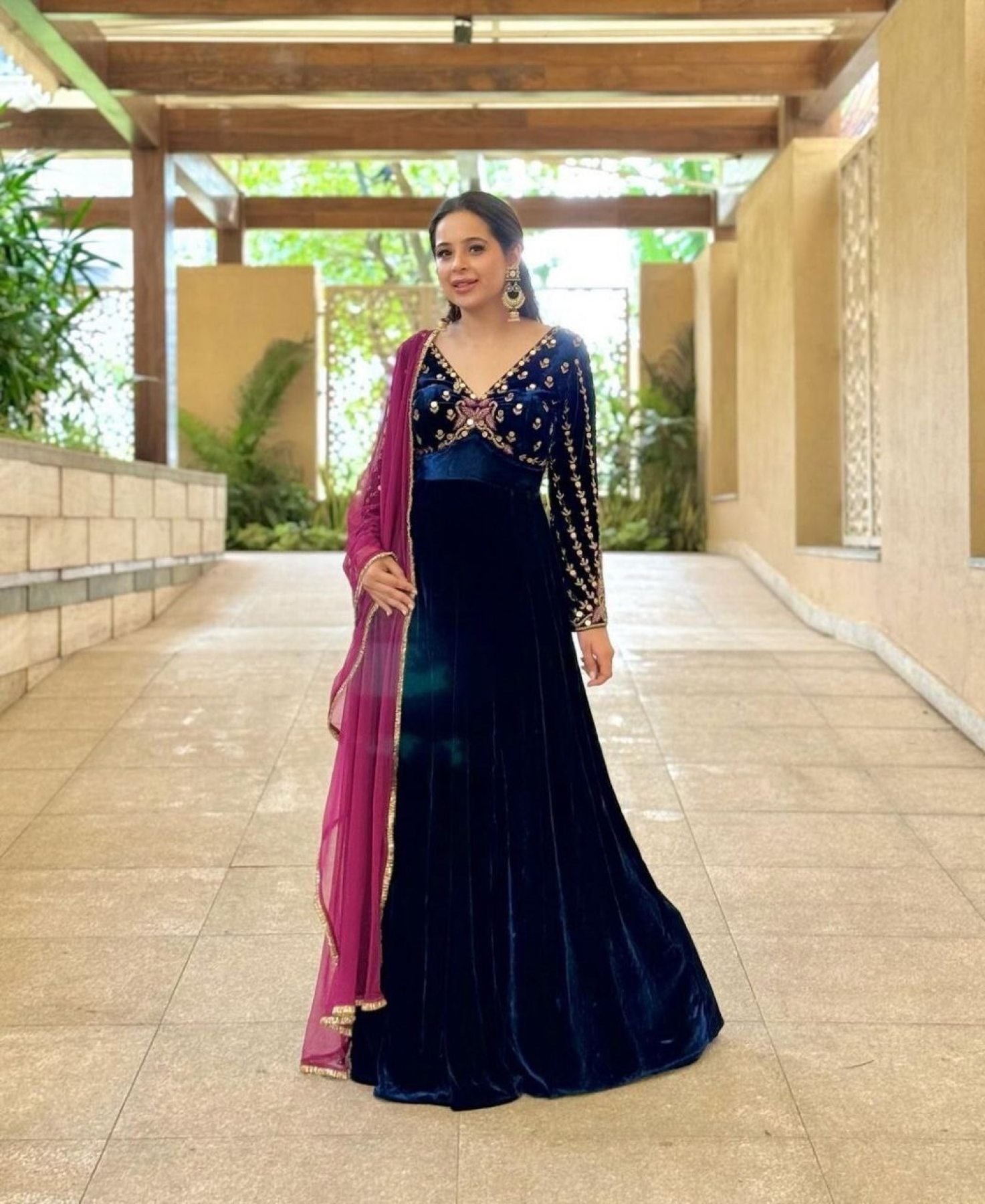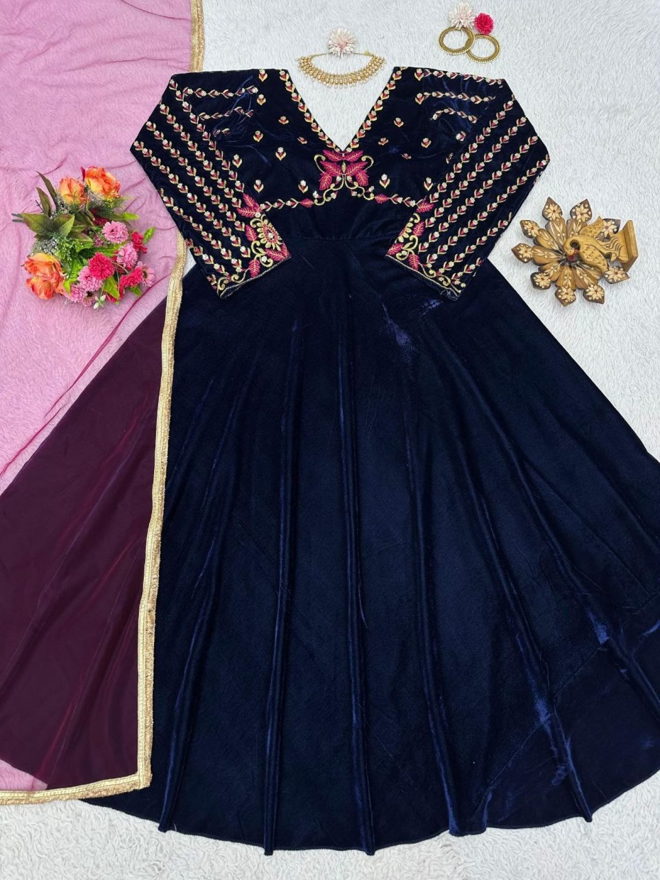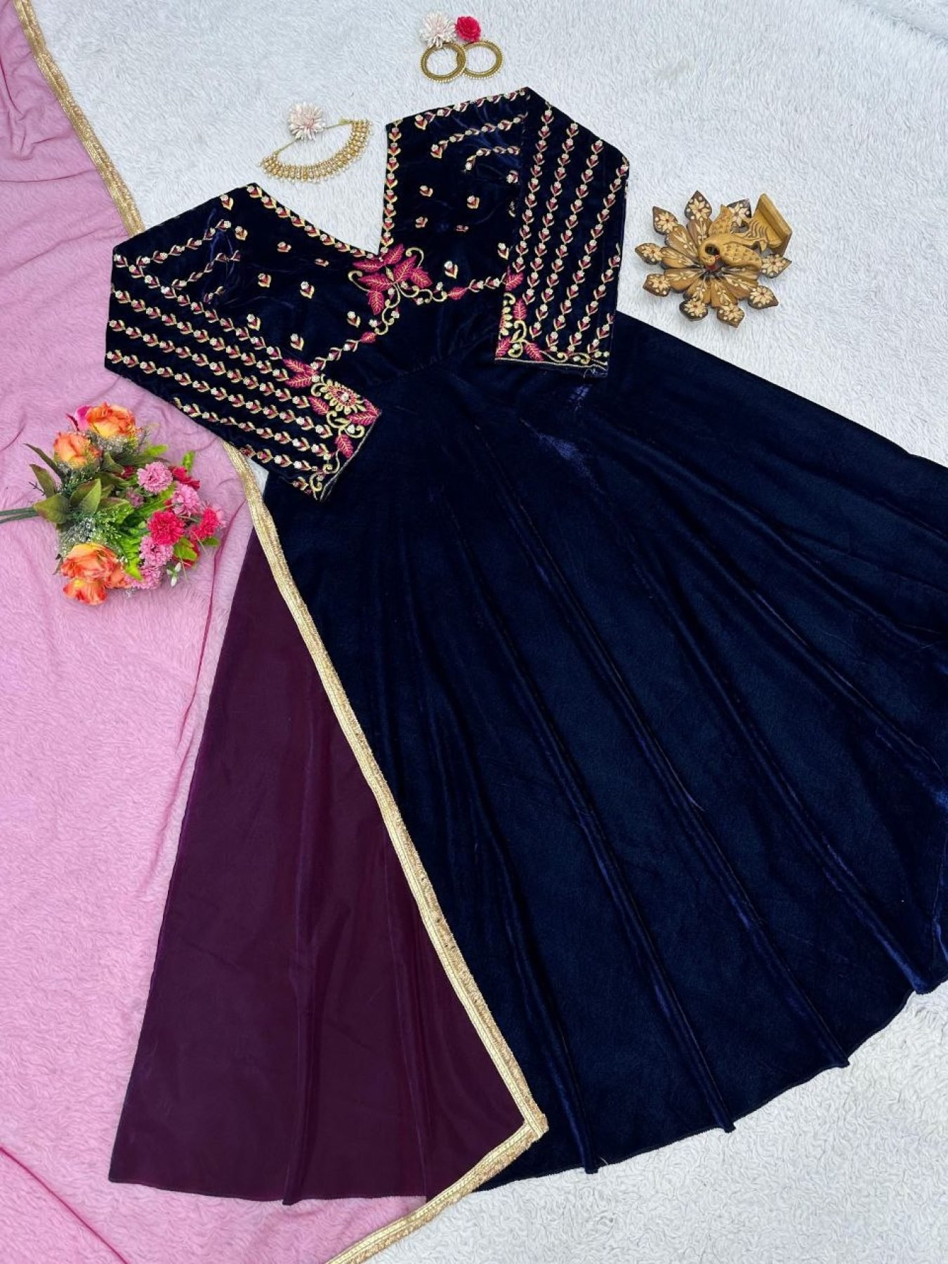 New Designer Viscose Velvet Gown With Soft Net Dupatta