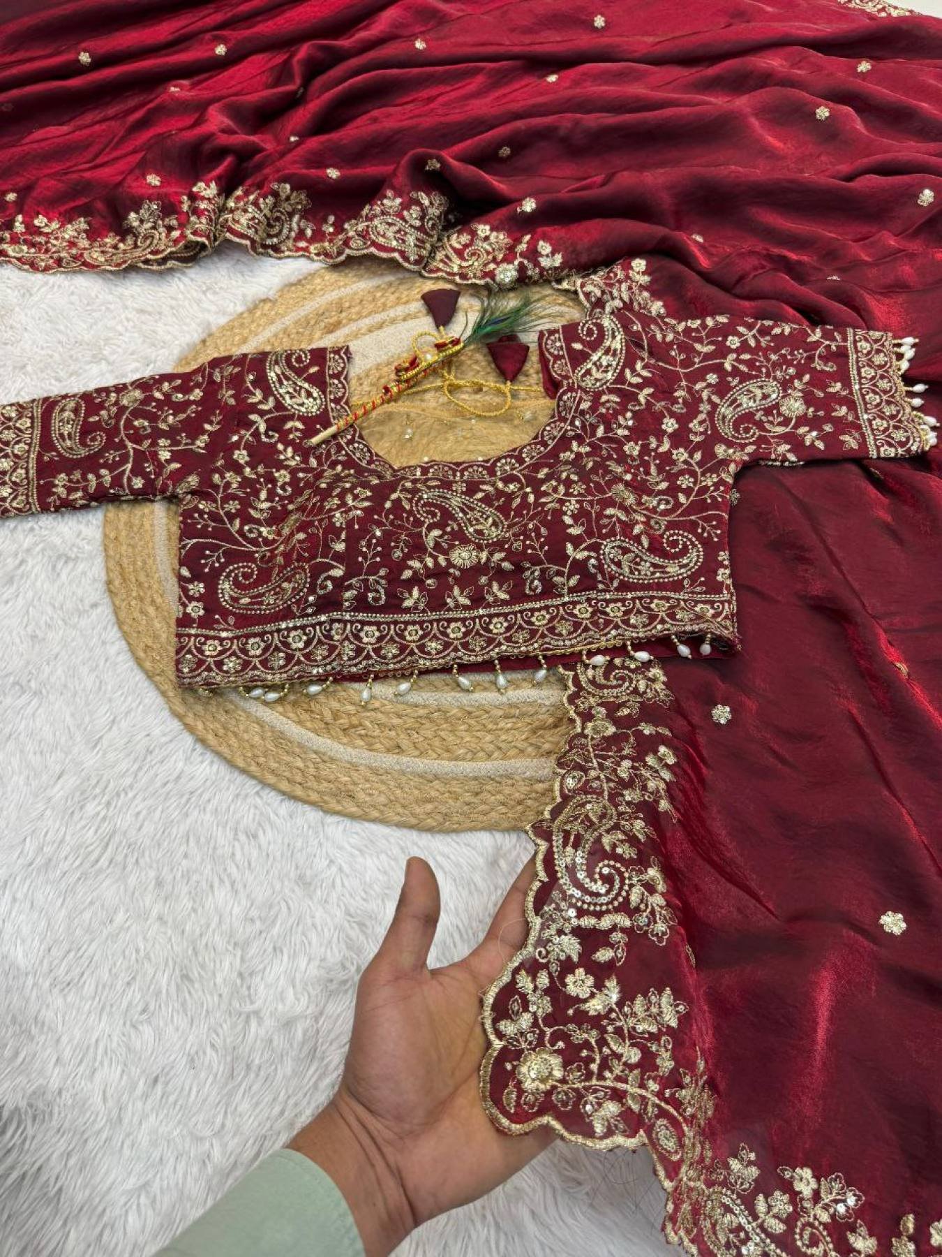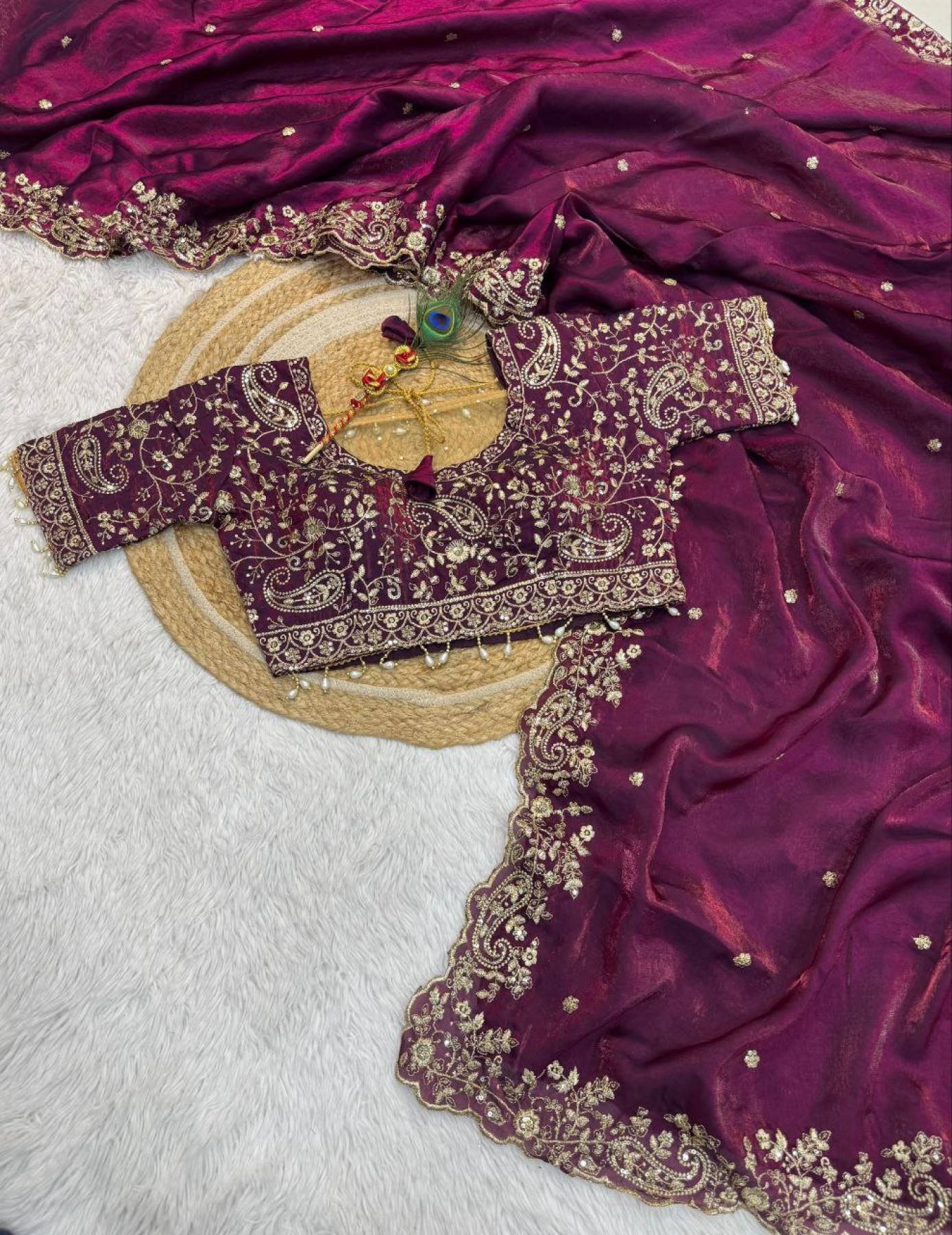 New Launch Space Silk Saree with Heavy Zari Embroidery Stitched Blouse Collection At Manufacturer Rate