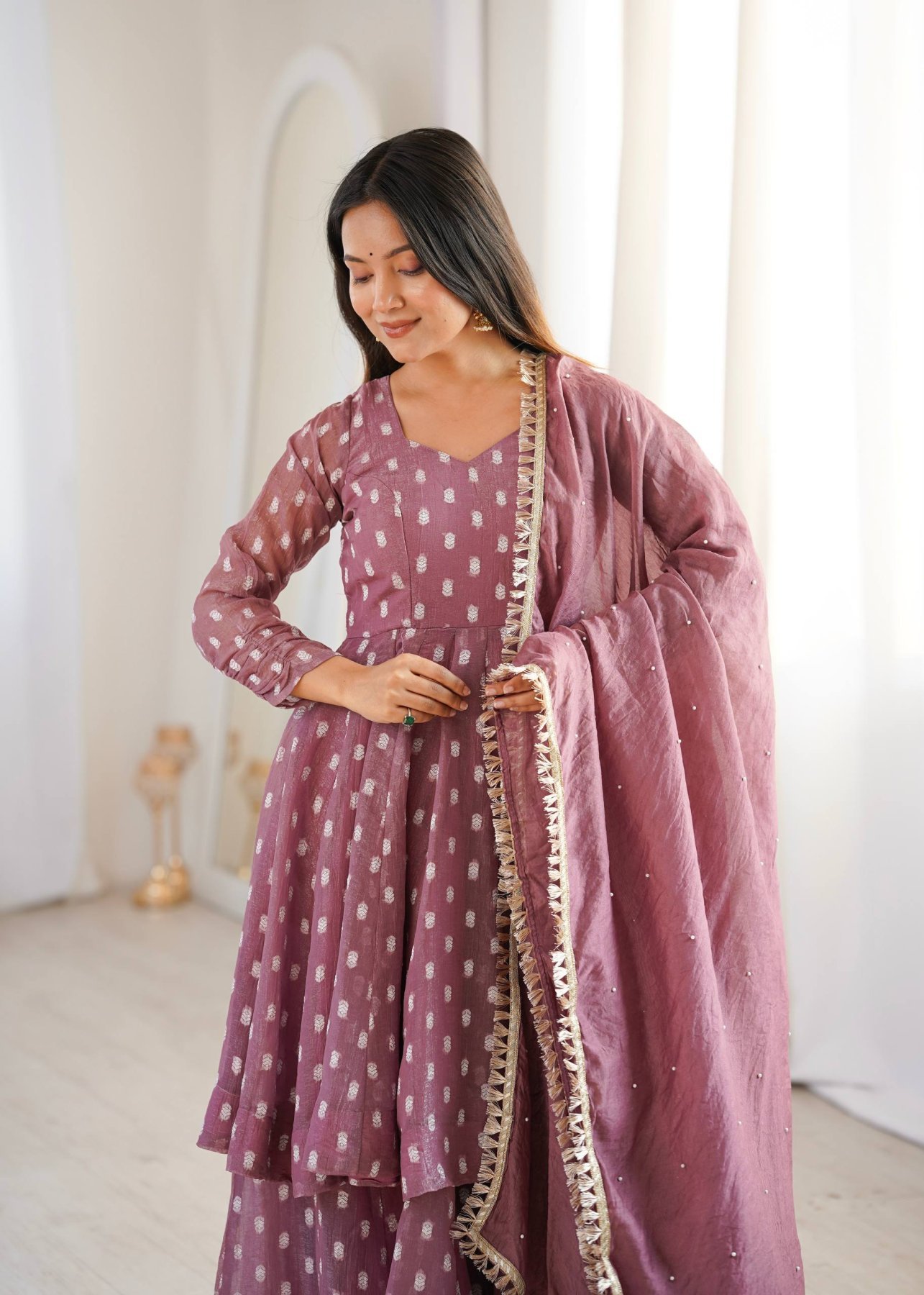 Opulent Mauve Crunchy Silk Sharara Suit Set with Jacquard Butti Work