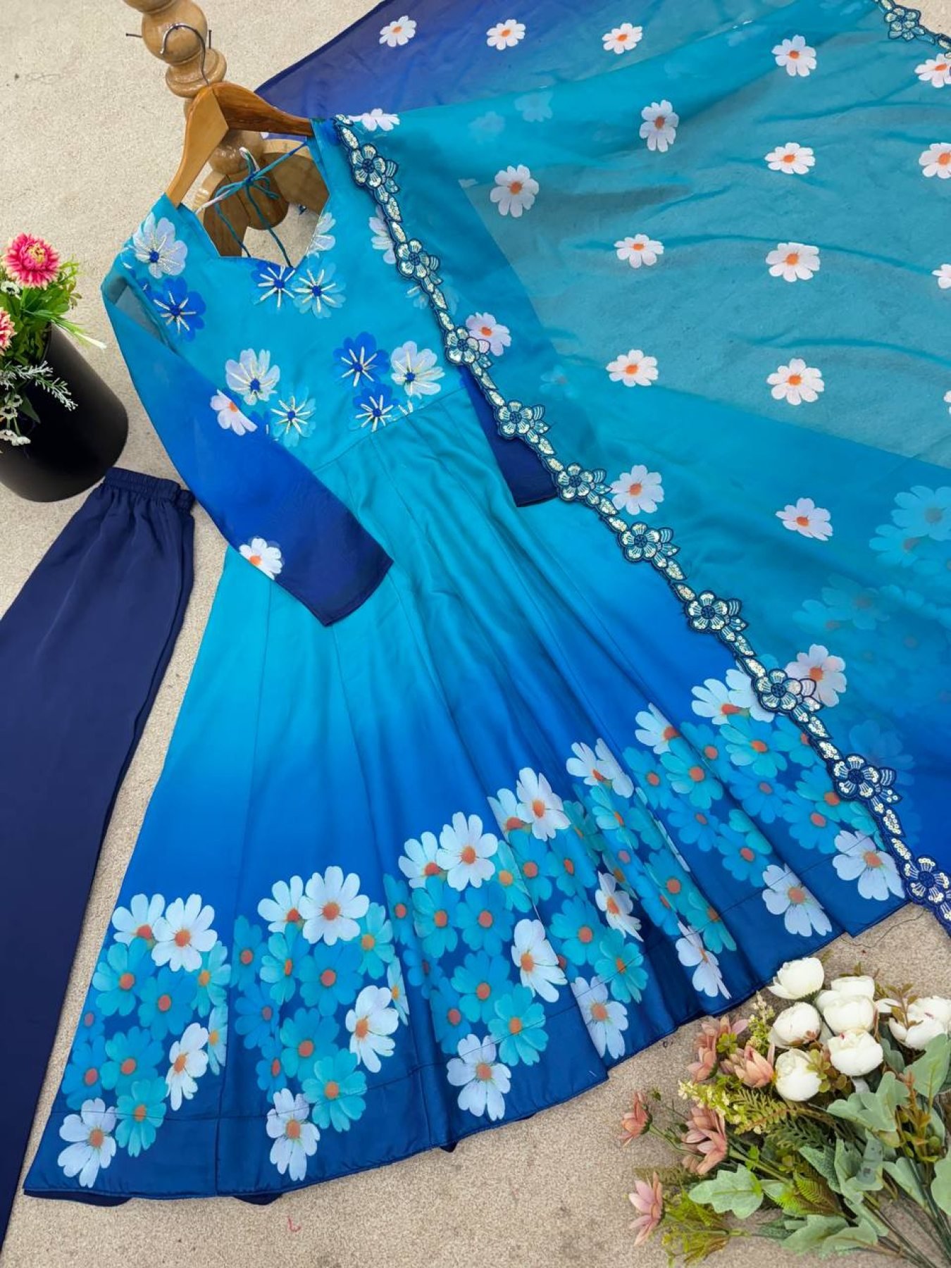 Size ChartStep into graceful elegance with this designer tebby organza gown set, created for modern festive and party wear styling. The gown features beautiful embroidery and sequin work with a 4-meter full flair, enhanced by full sleeves and a soft micro cotton inner for comfort. Paired with a comfortable micro cotton pant and a matching organza dupatta detailed with embroidery, digital print, and lace border, this outfit is perfect for festive functions, parties, and special occasions. A premium choice for boutiques, wholesalers, and international buyers at manufacturer pricing.
