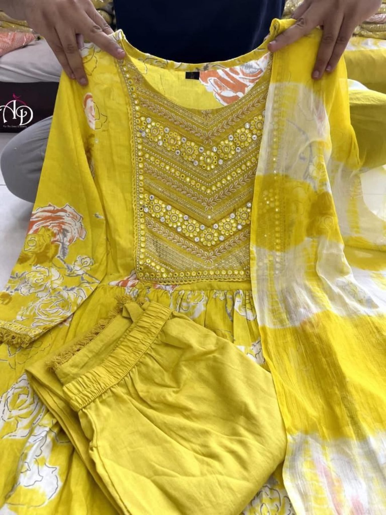 ORANGE AND YELLOW FLORAL EMBROIDERED NAYRA CUT COTTON SUIT SETS