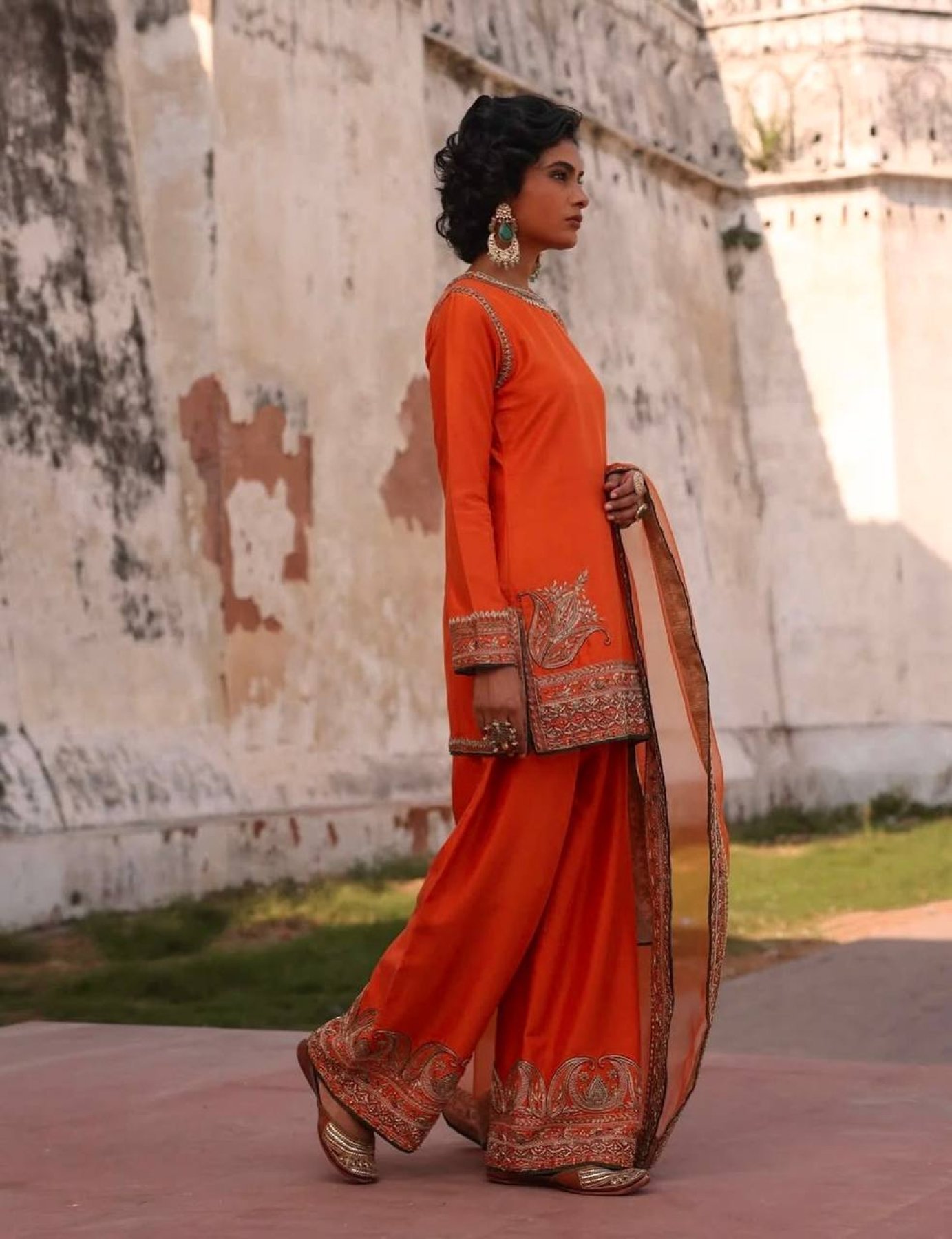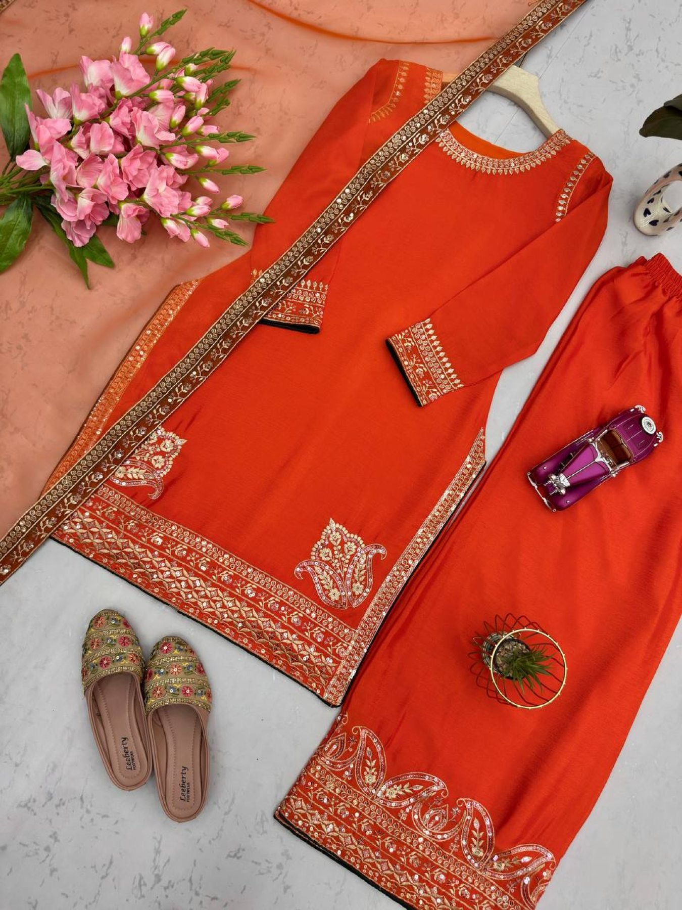 Orange Color Straight Cut Plazzo Suit Set Factory Price Best for Resellers