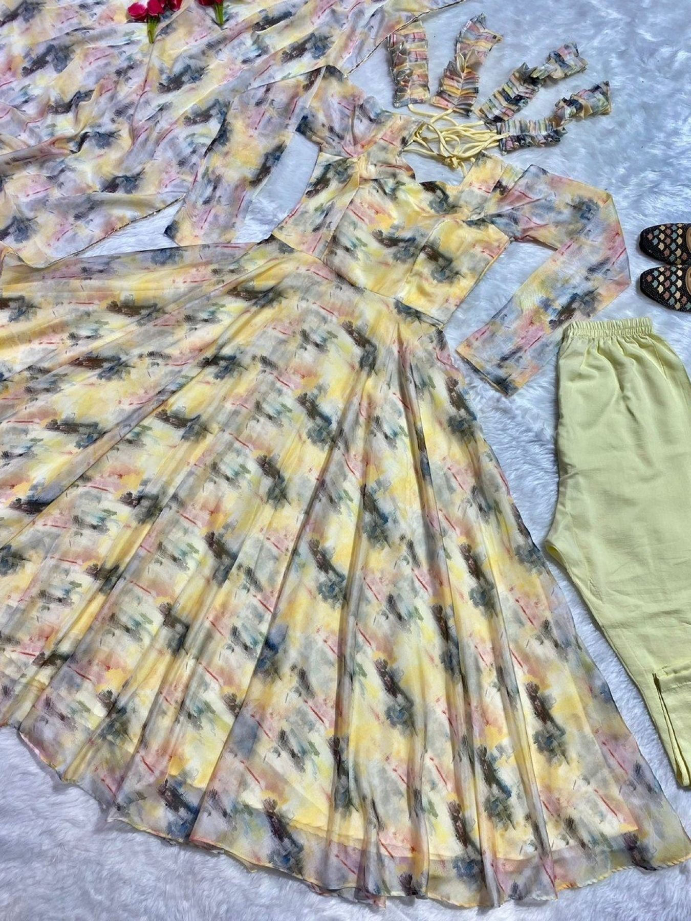 Organza Anarkali Kurti Pant Dupatta