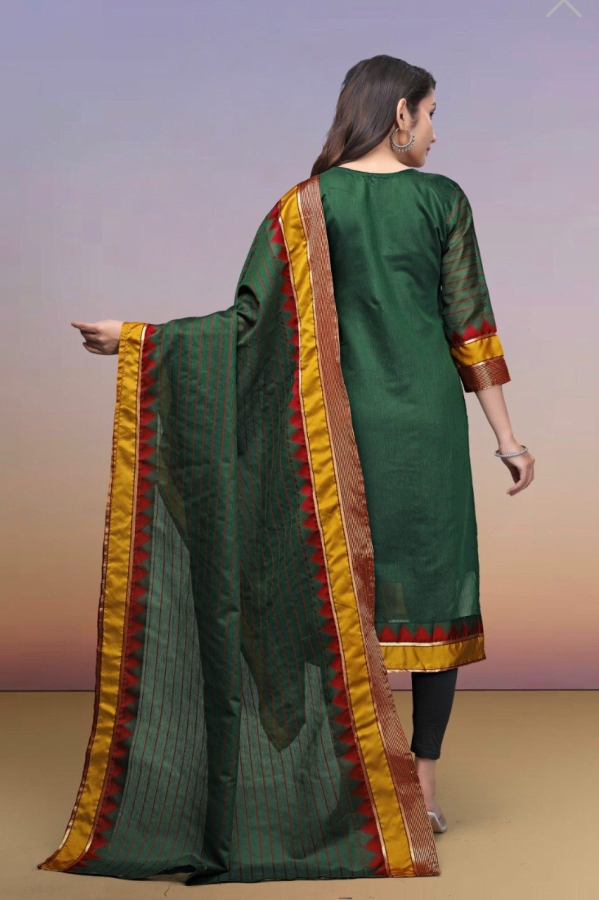 Orvexa Green Cotton Kurti with Dupatta for Family Functions