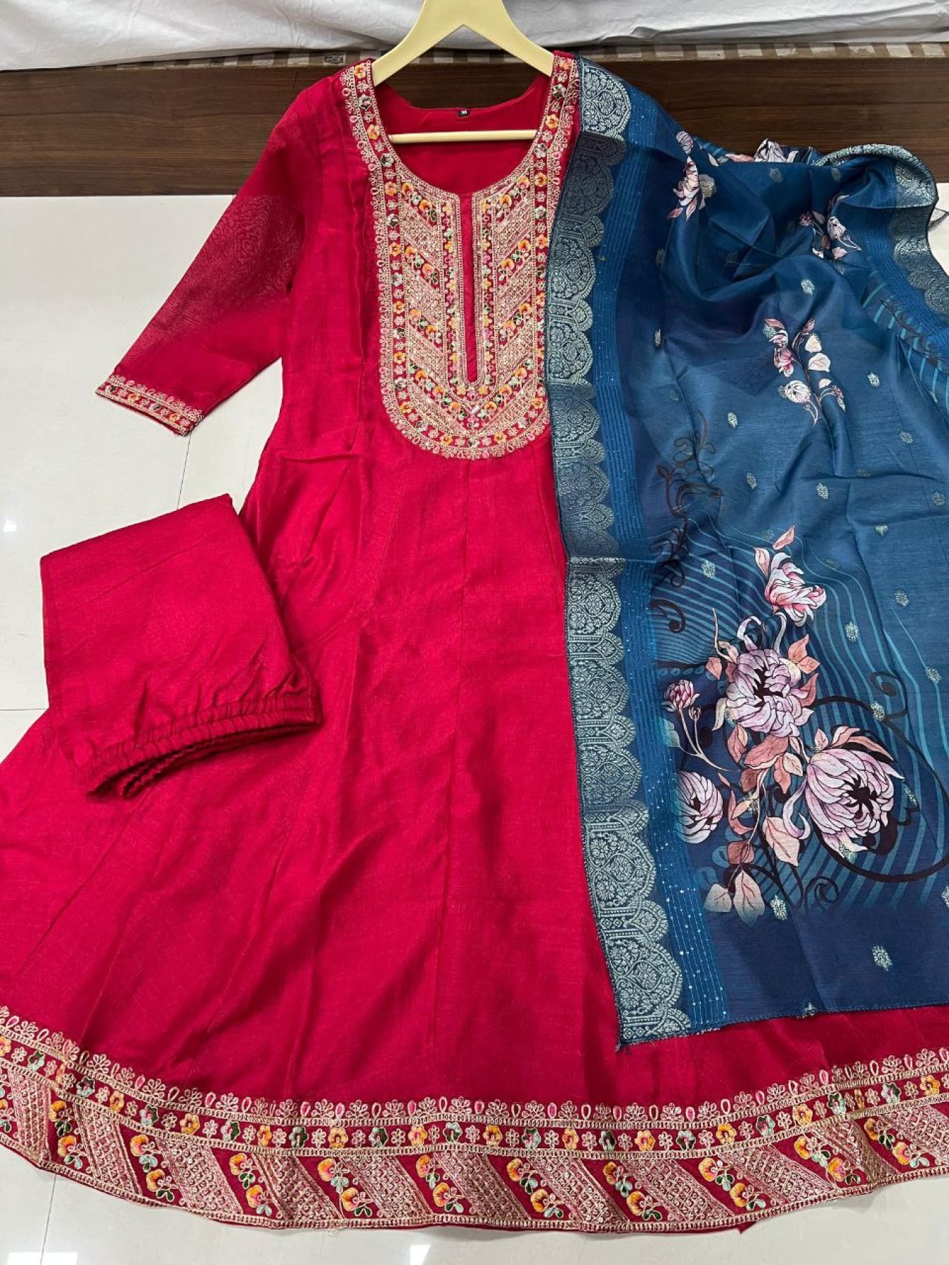 Elevate your ethnic wardrobe with this stunning Anarkali Gown Set, designed to bring out your grace and elegance on any occasion. Crafted with high-quality Pure Viscose Vichitra Silk, this ensemble features intricate embroidery, luxurious fabric, and a rich traditional appeal.