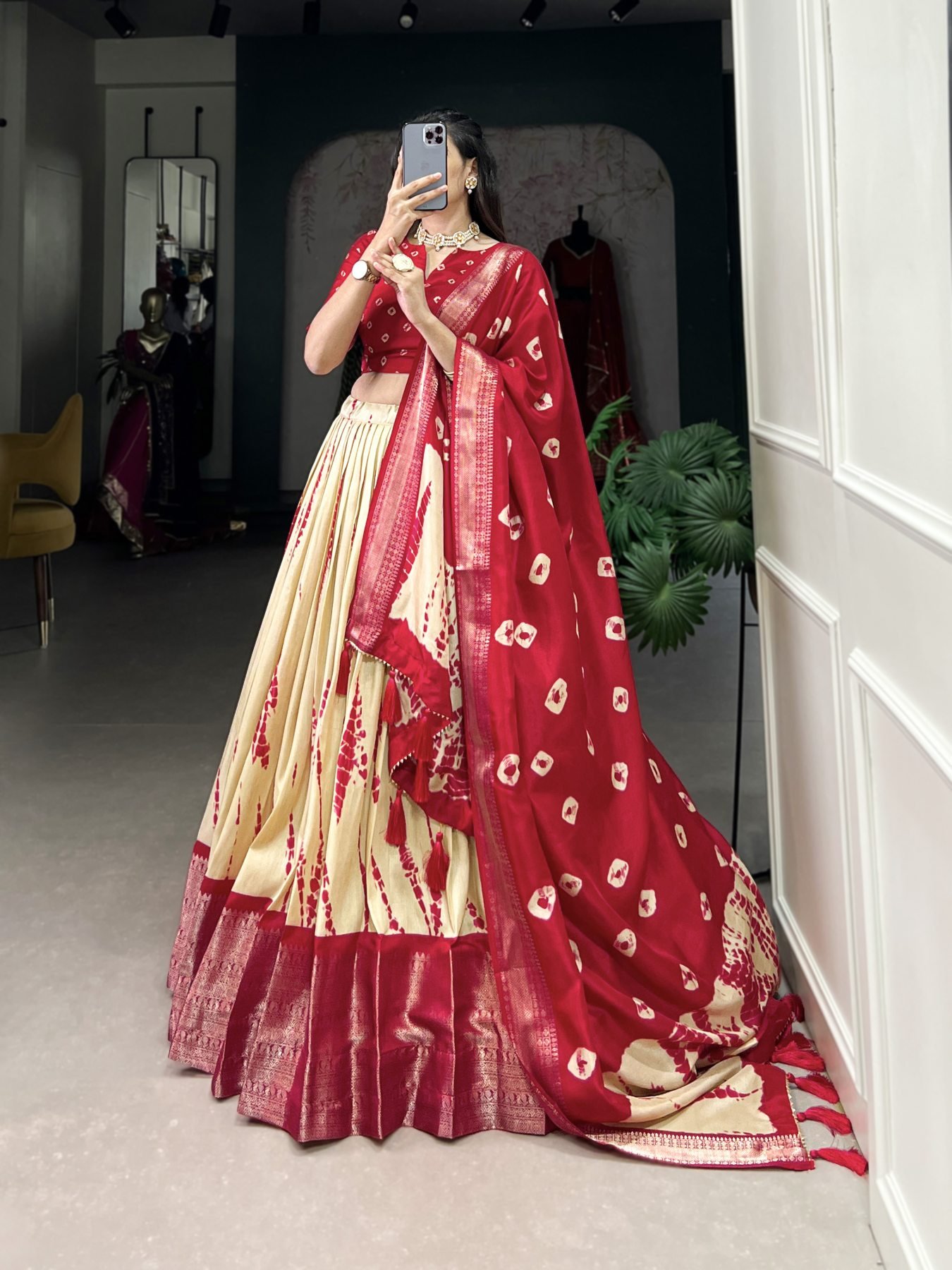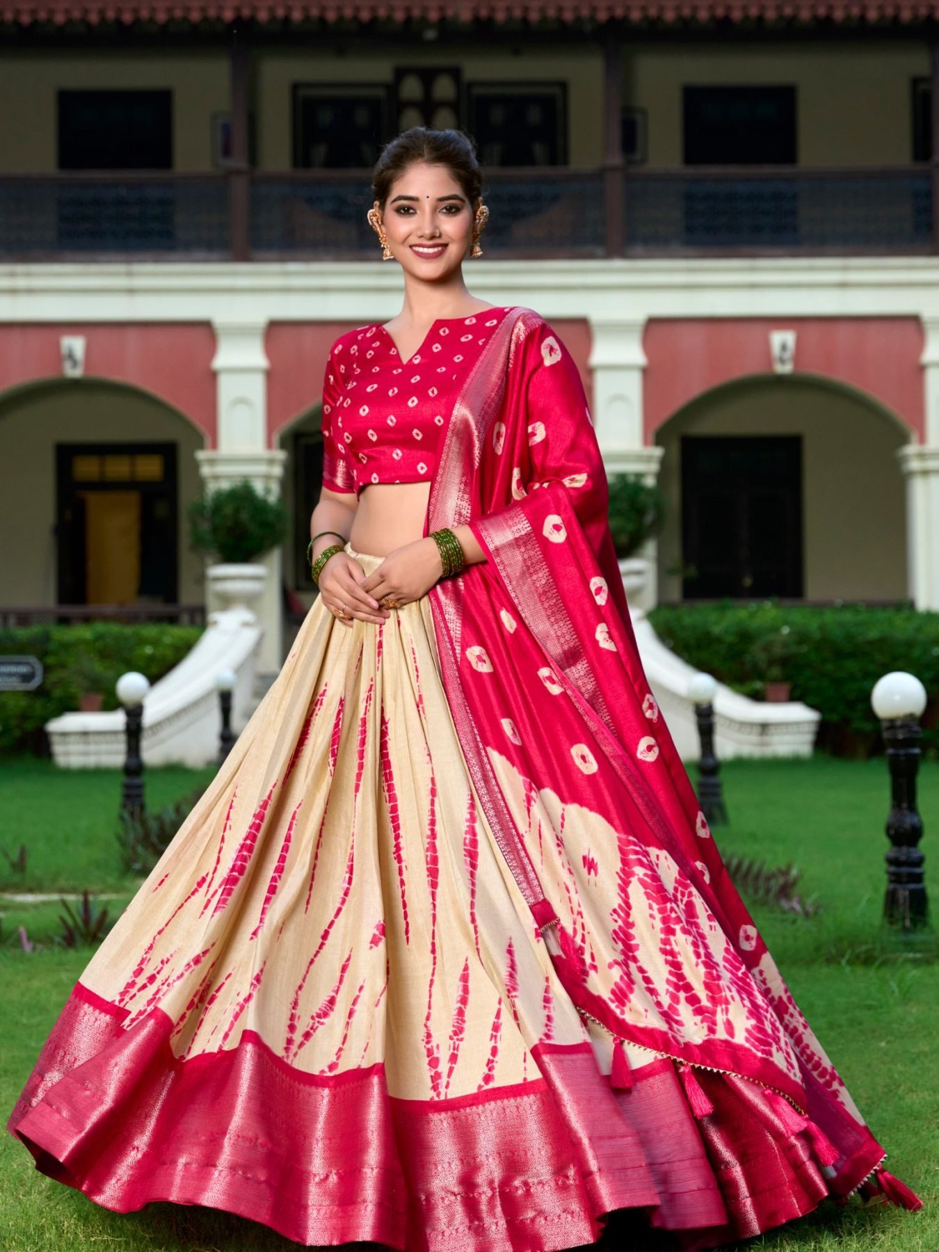 • Pink Color Dola Silk Shibori Print Saree Lehenga Choli Set