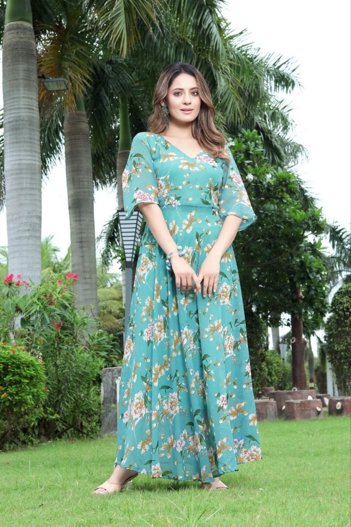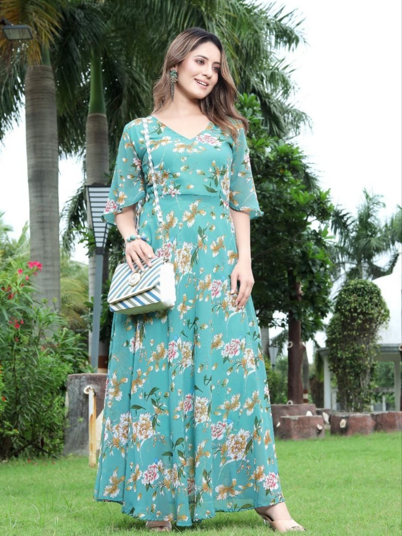 PARTY WEAR BEAUTIFUL GEORGETTE LONG HEAVY GOWN