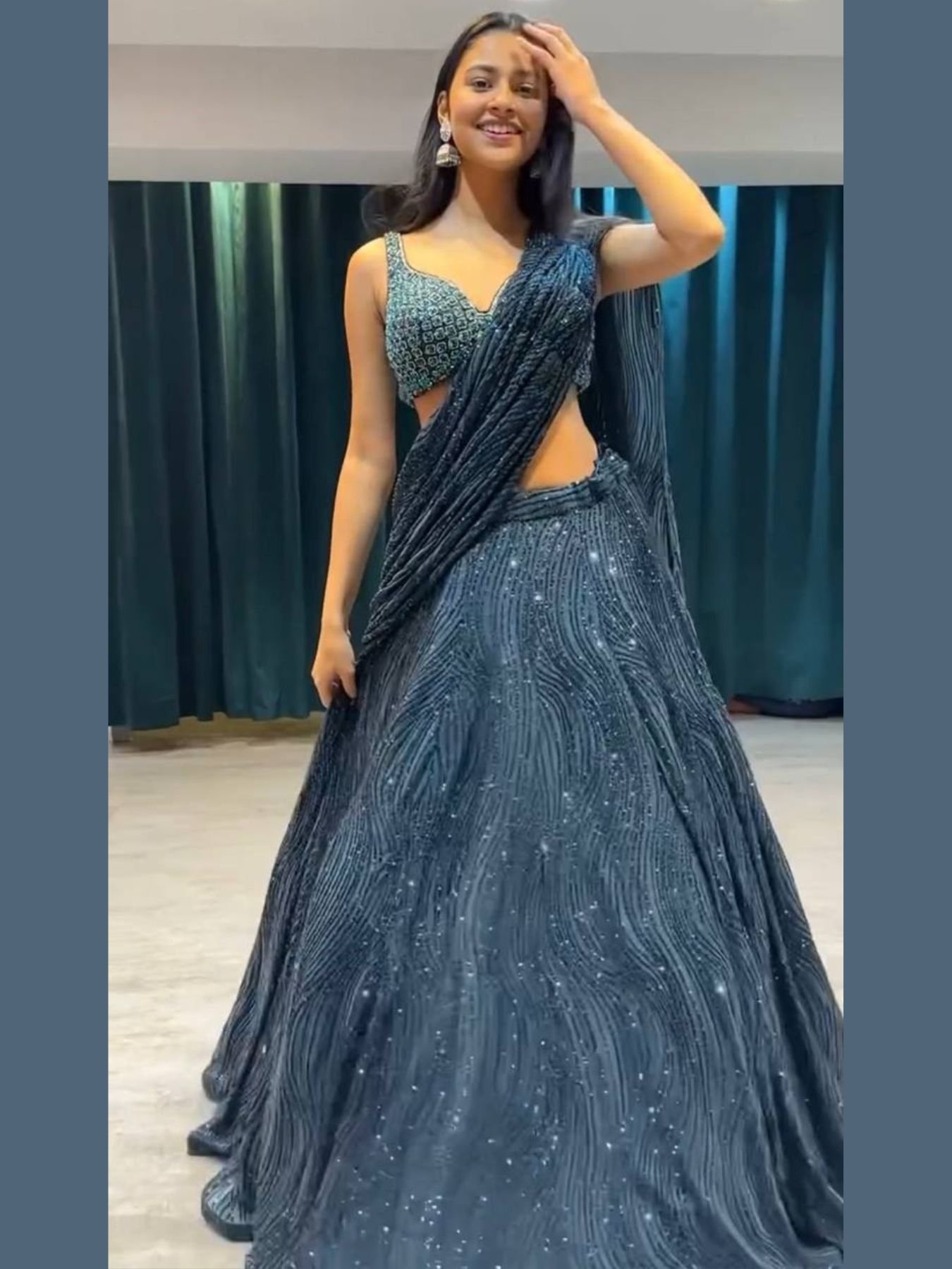 Party Wear Faux Georgette Lehenga Choli With Embroidered Work
