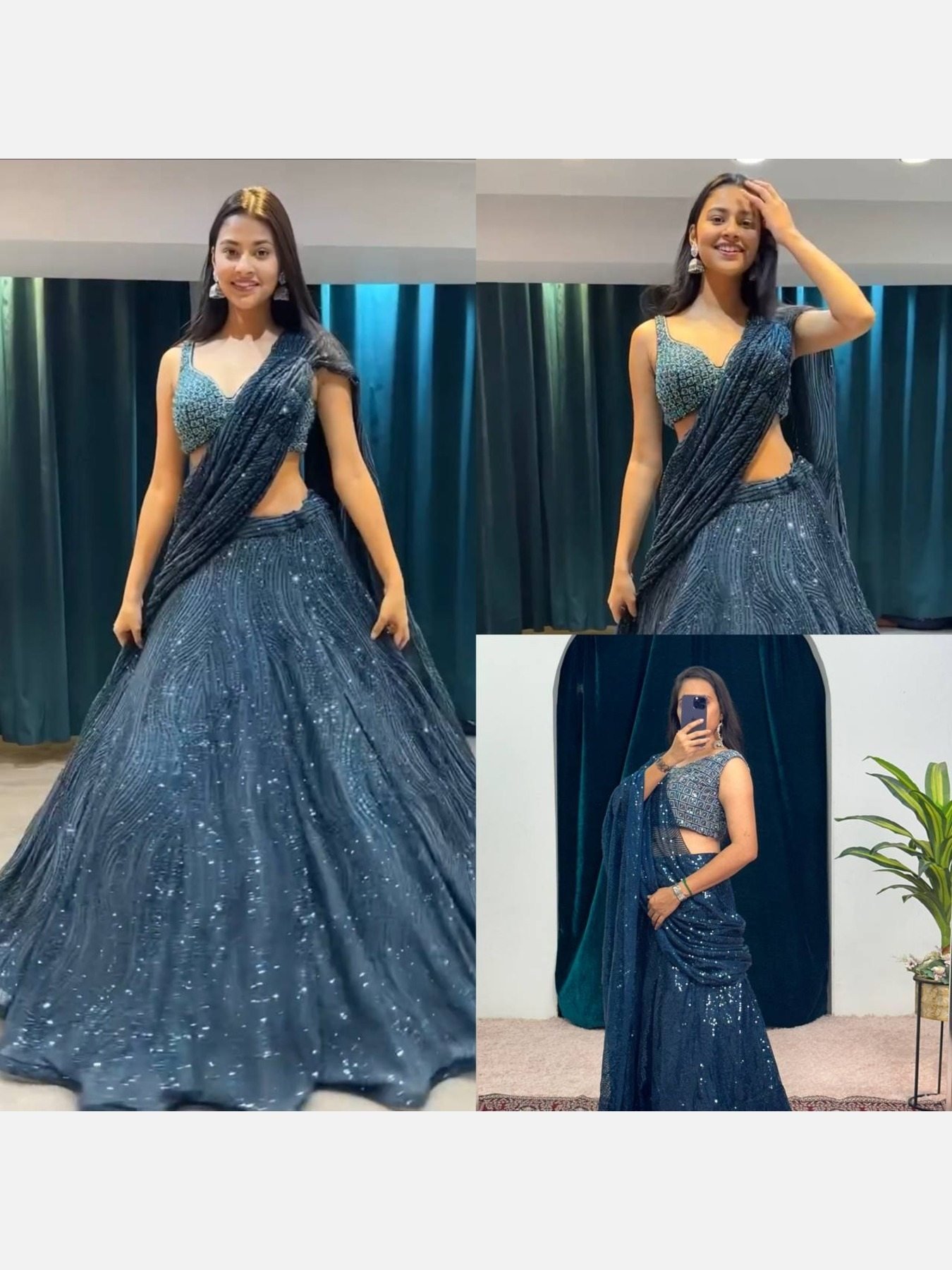 ONE SIDE DUPATTA ATTACHED WITH LEHENGA