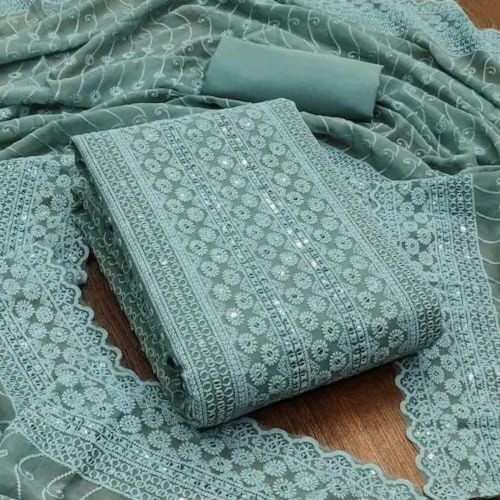 Party Wear Georgette Suit with All-Over Siffli and Embroidered Dupatta