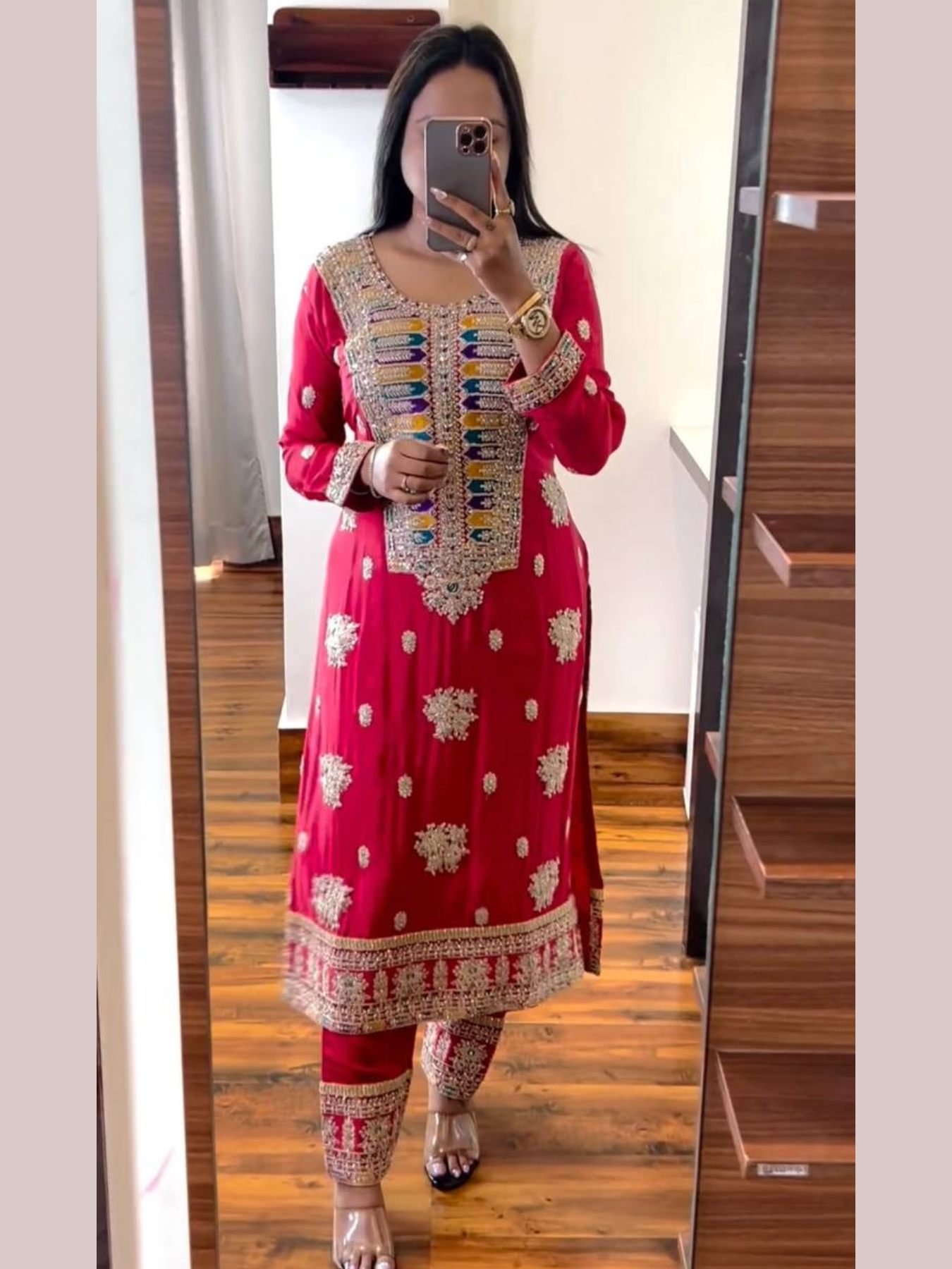 *Pent Fabrics* :Heavy Faux Georgette With *Malty Thread Embroidery Sequence Work*