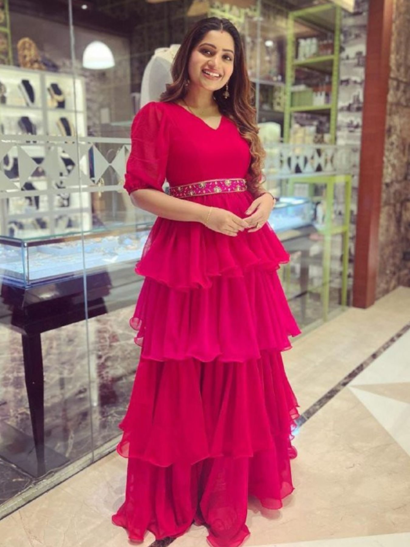 Party Wear Look Georgette Gown With Fancy Belt