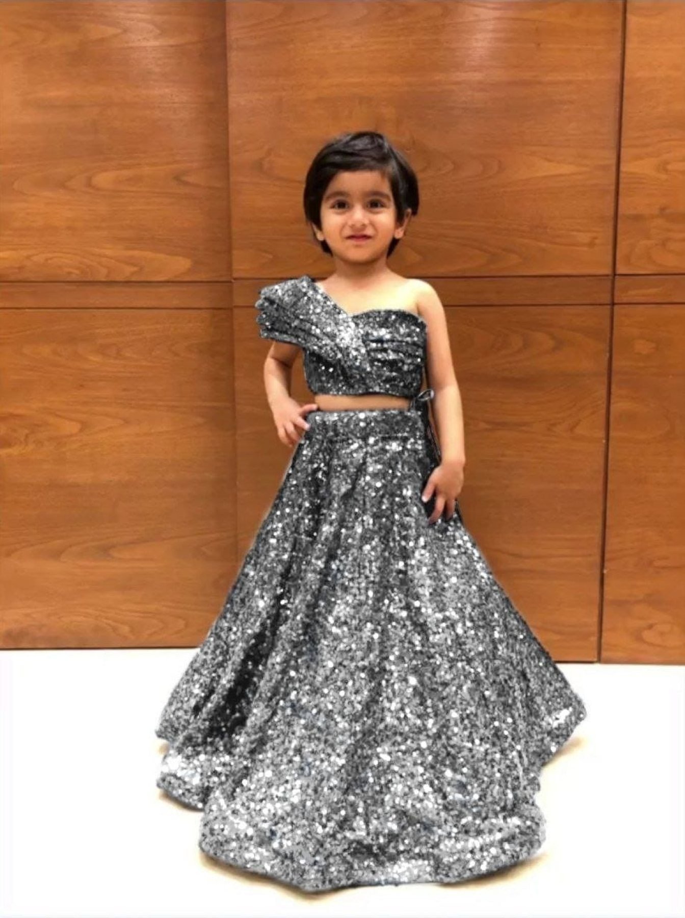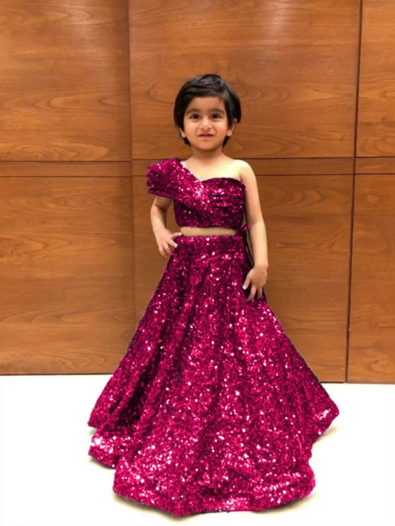 CROP TOP: SOFT NET WITH HEAVY SEQUENCING WORK ALLOVER (FULLY STITCHED) WITH FRILL PATTERN AND ONE SIDE SHOULDER PATTERN