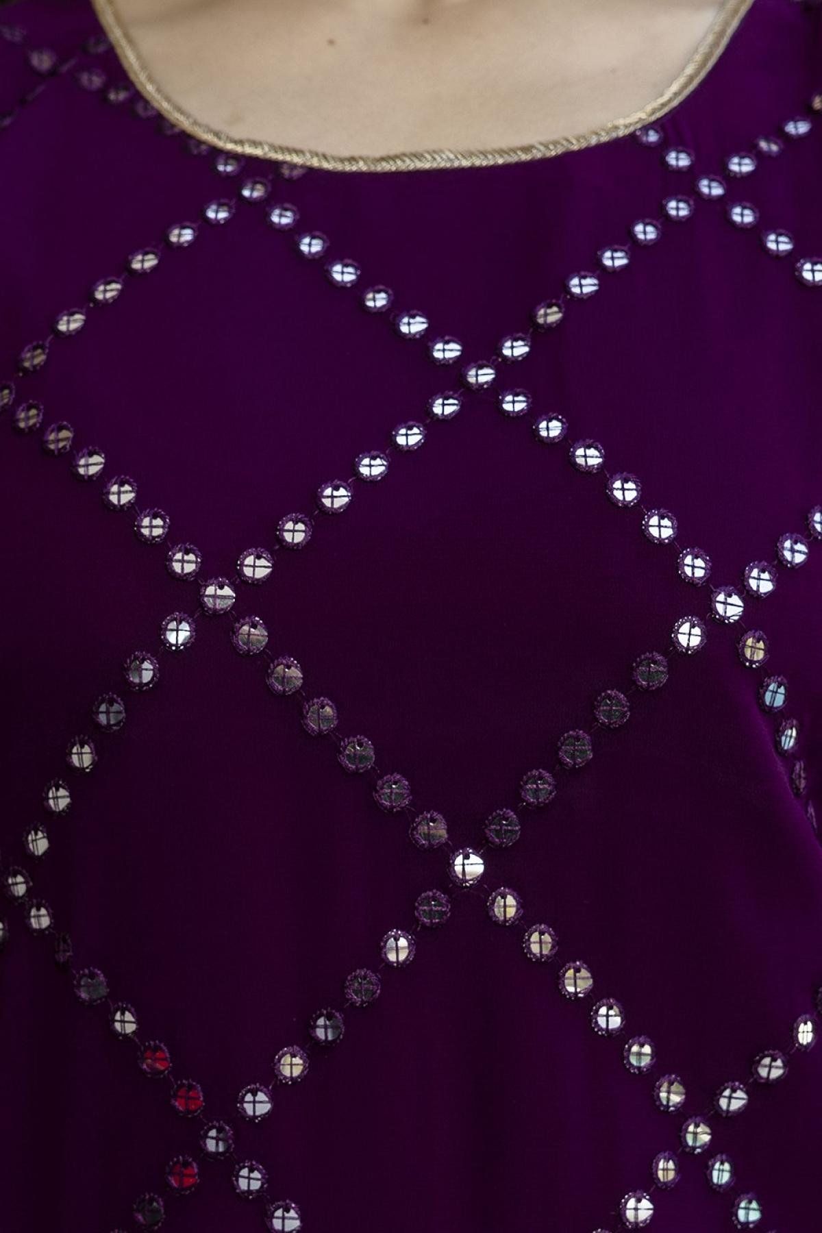 Make a graceful style statement in this Dark Purple Georgette Sharara Set, blending traditional allure with modern sophistication.