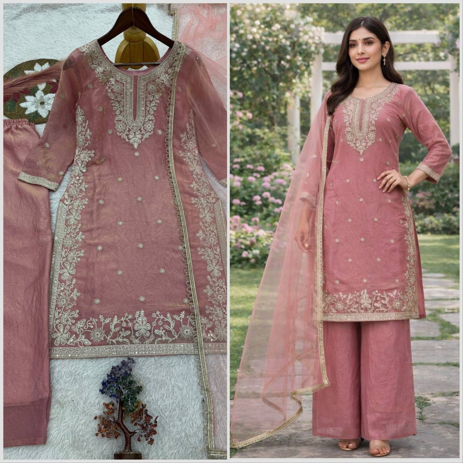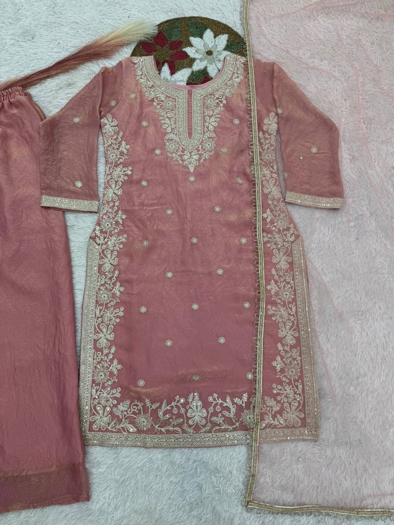 Add soft elegance to your festive collection with this peach straight cut palazzo dress set, specially designed for Eid celebrations. Crafted in premium heavy Fendy silk, the outfit is enhanced with beautiful embroidery sequence and cording work, offering a refined ethnic look at an attractive wholesale rate.