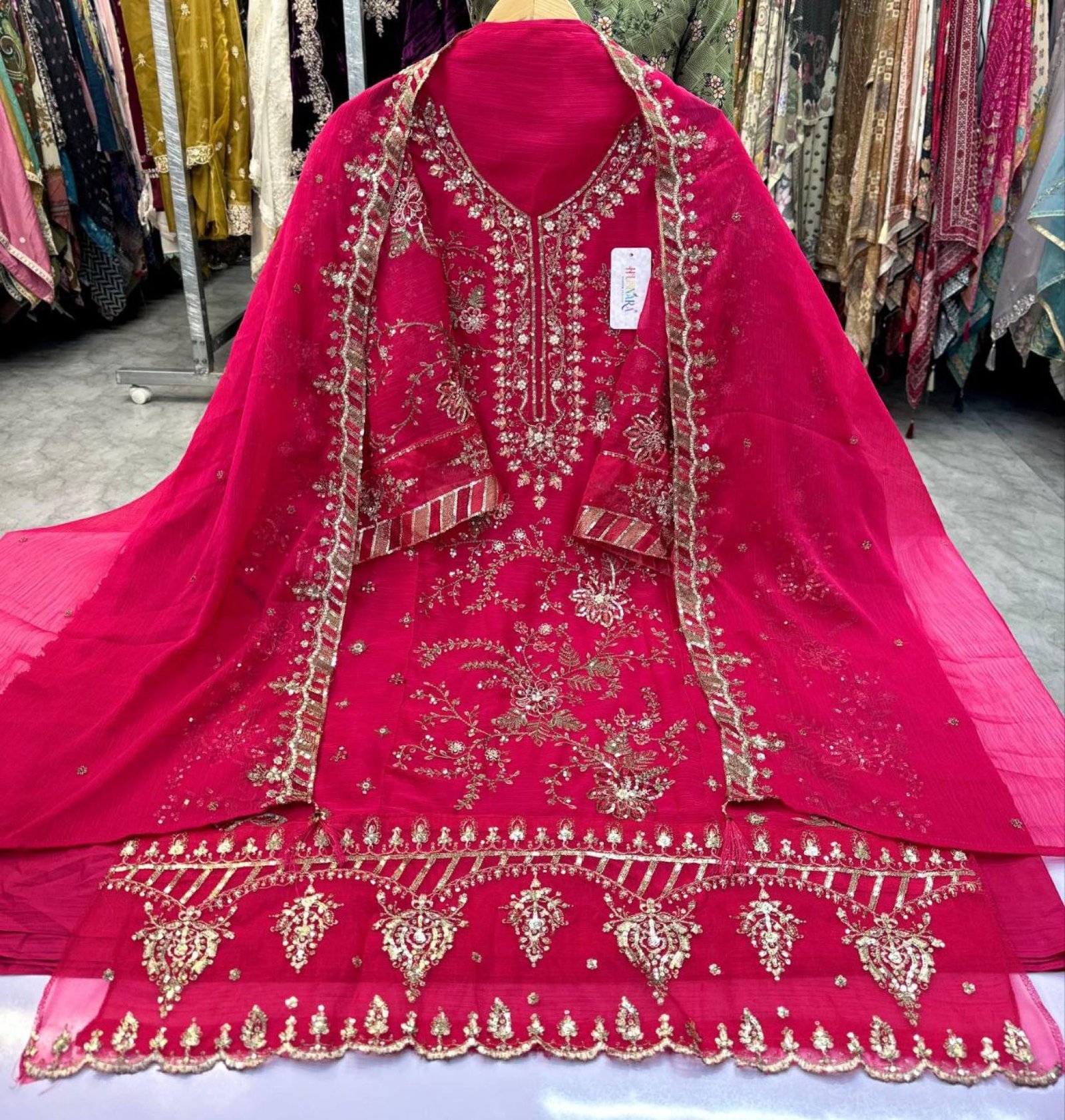Pink Partywear pakistani chiffon suit wholesaler 2026