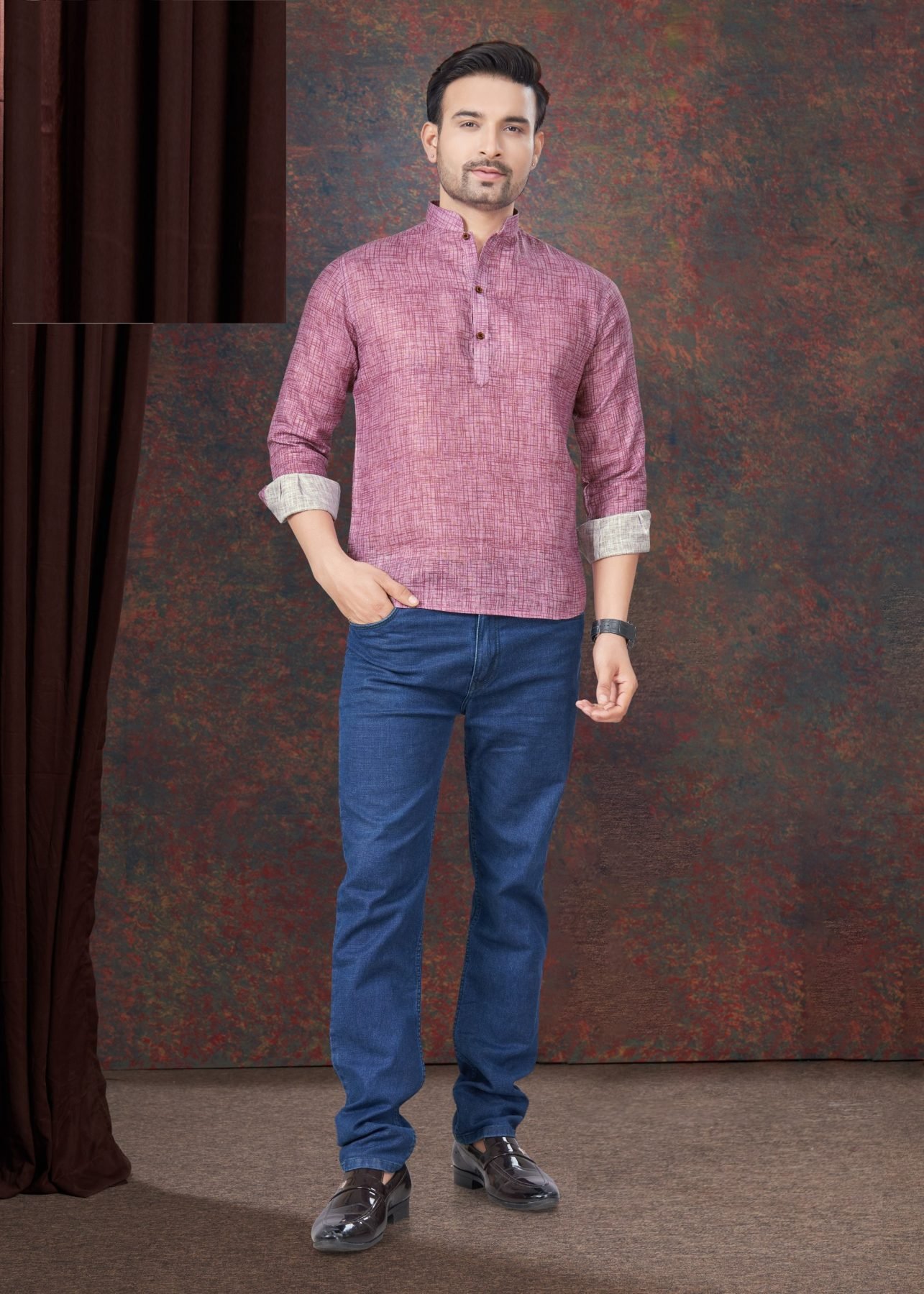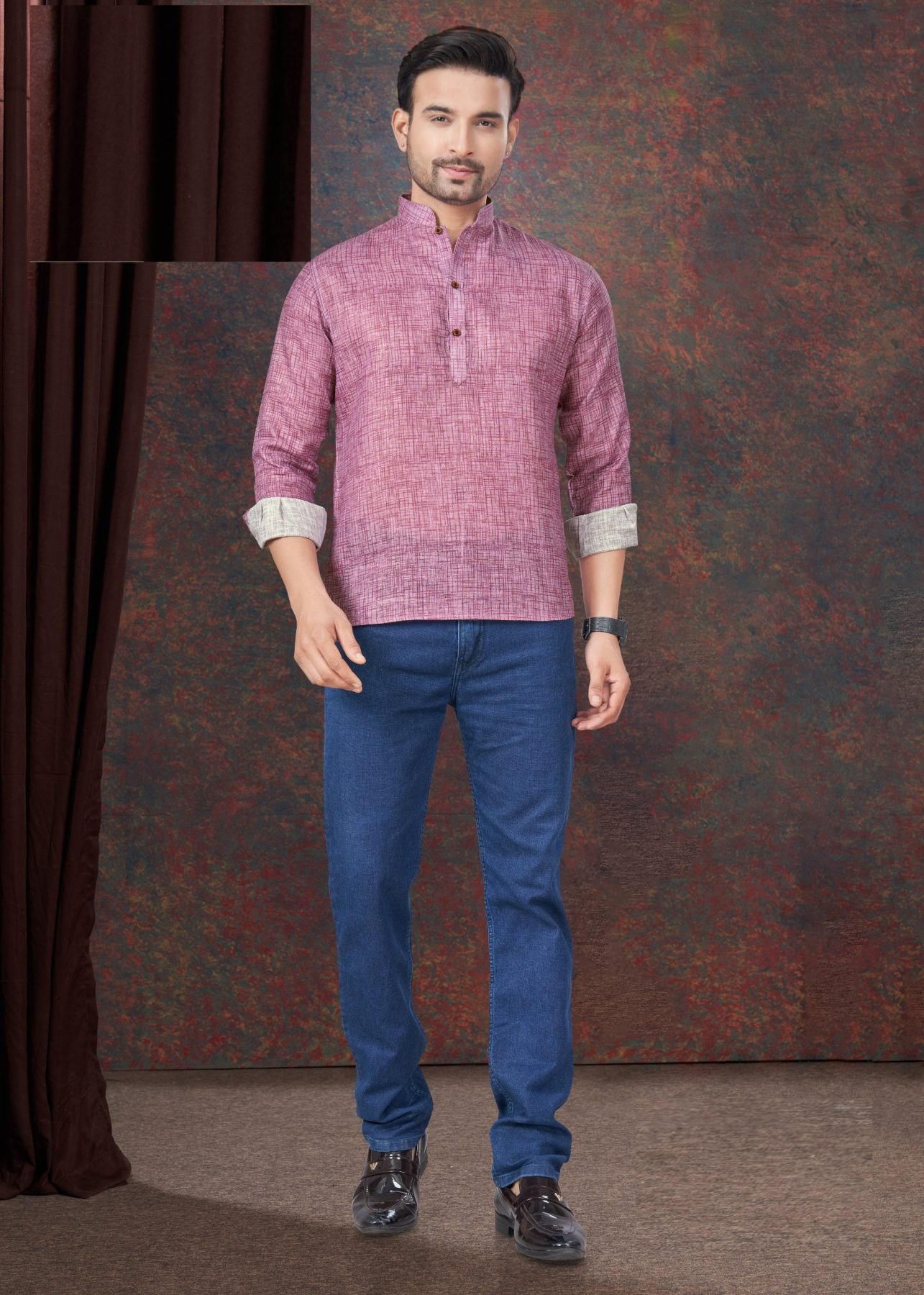 Pink Pure Linen Straight Casual Wear Readymade Short Kurta