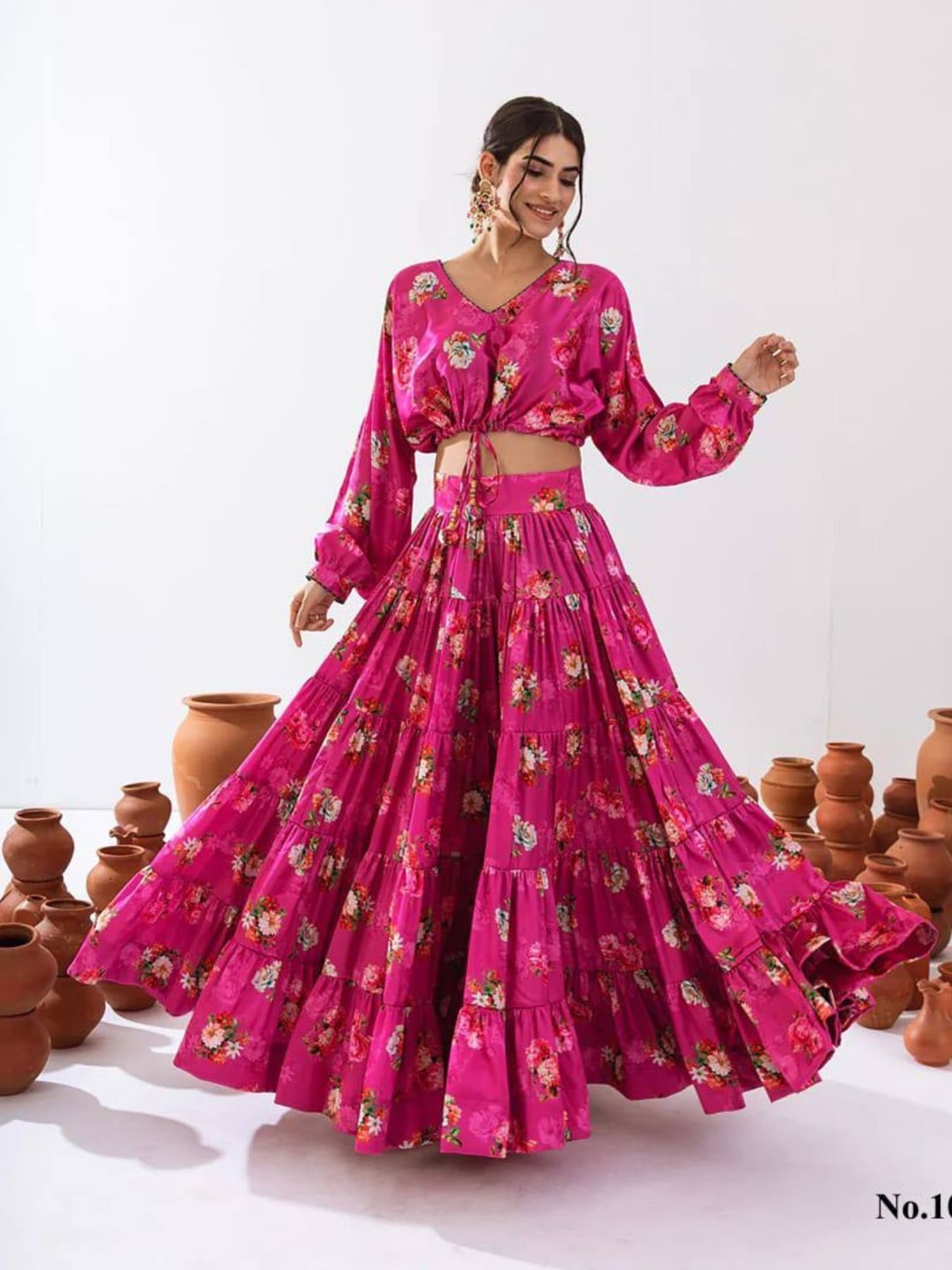 Pink ReadyMade Heavy Chinon Printed Lehenga Choli