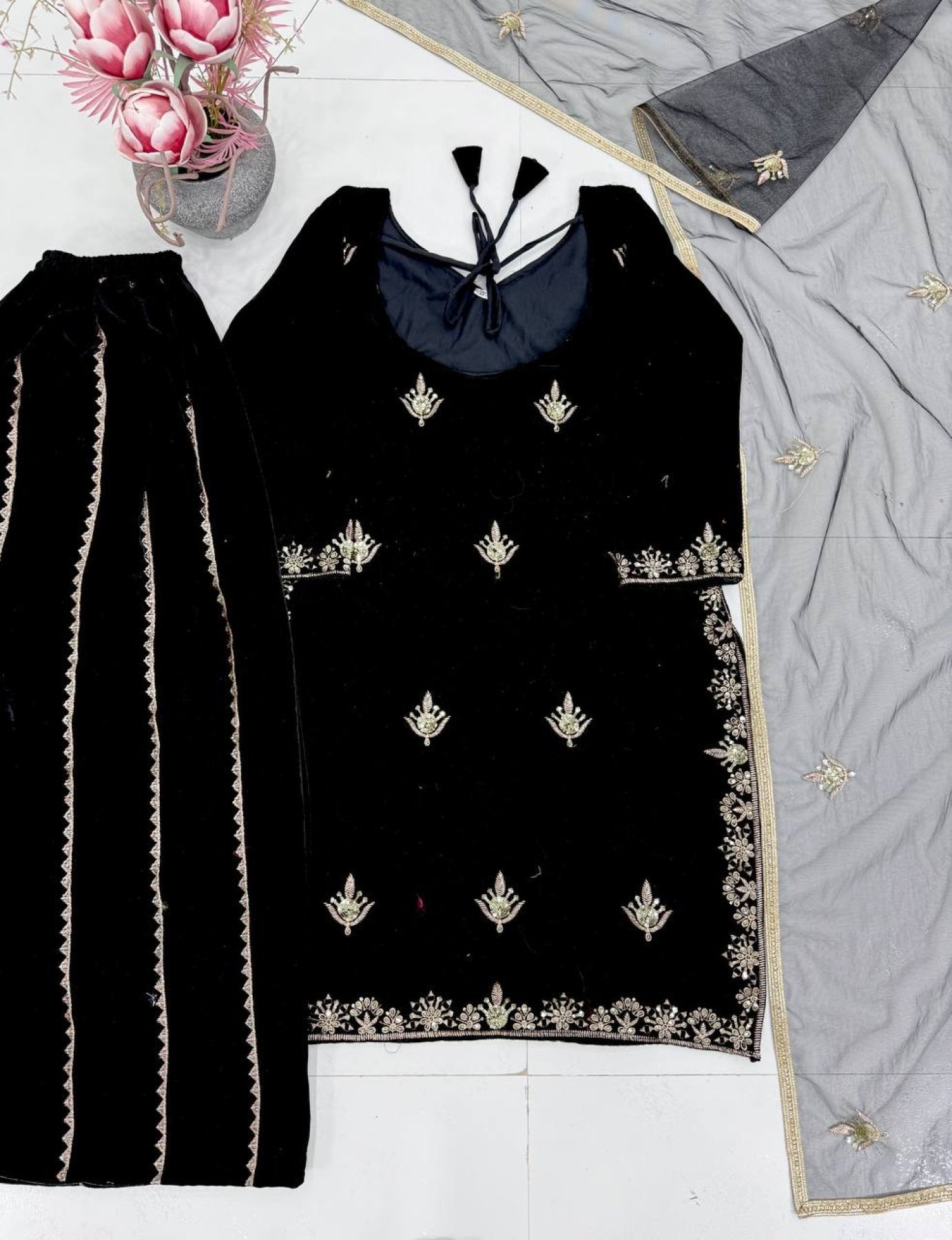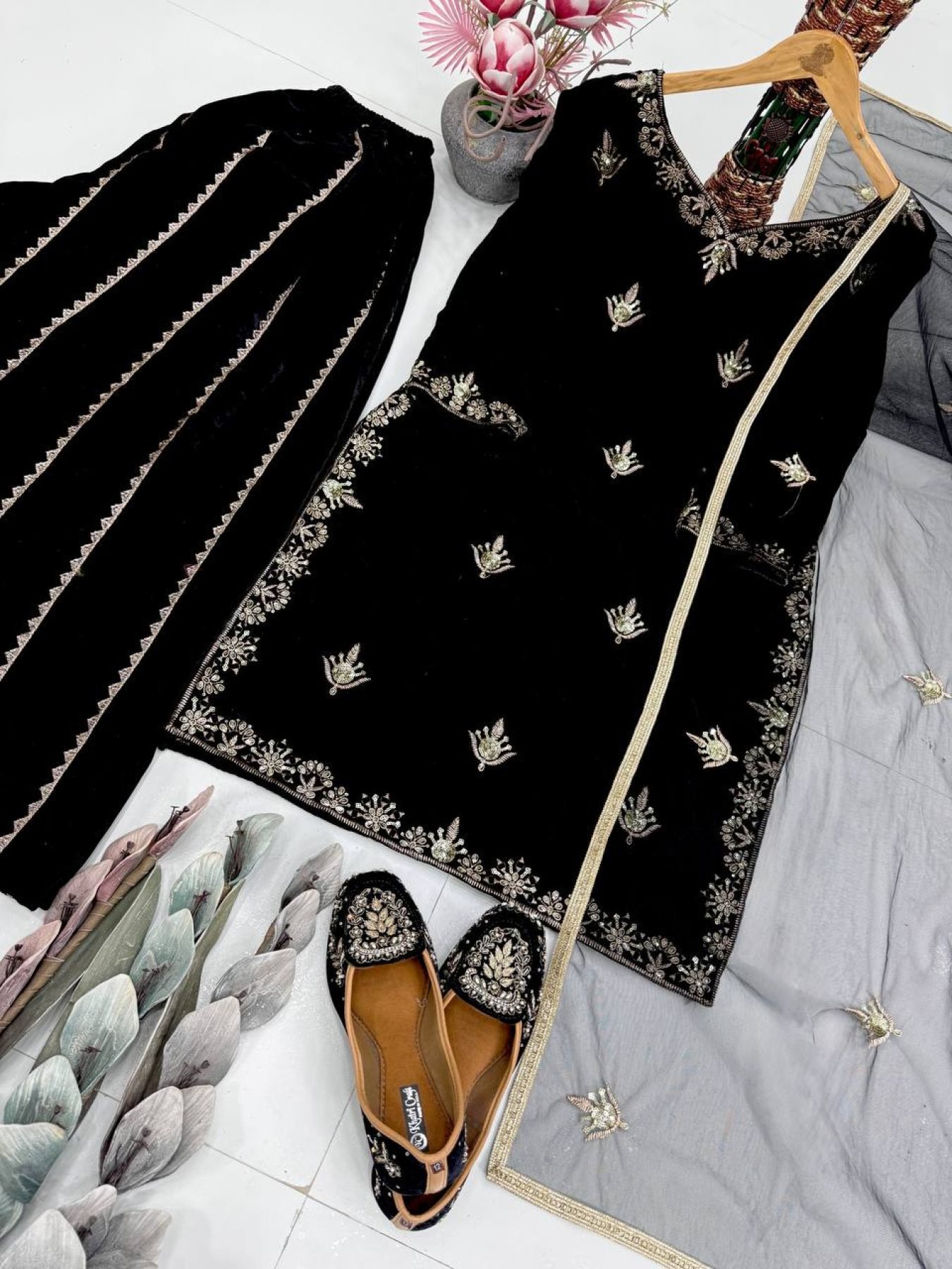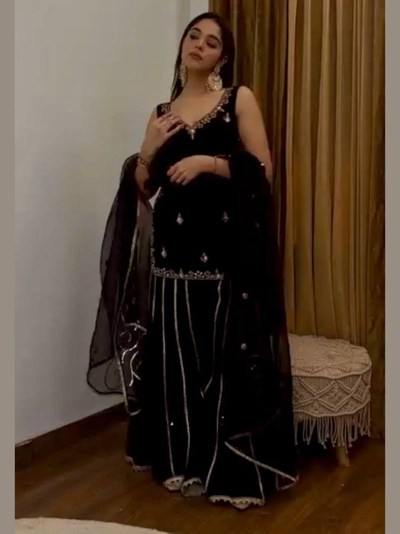 Precious Viscose Velvet Top Sharara with Both Side Sequence Work for Party Engagement Wear