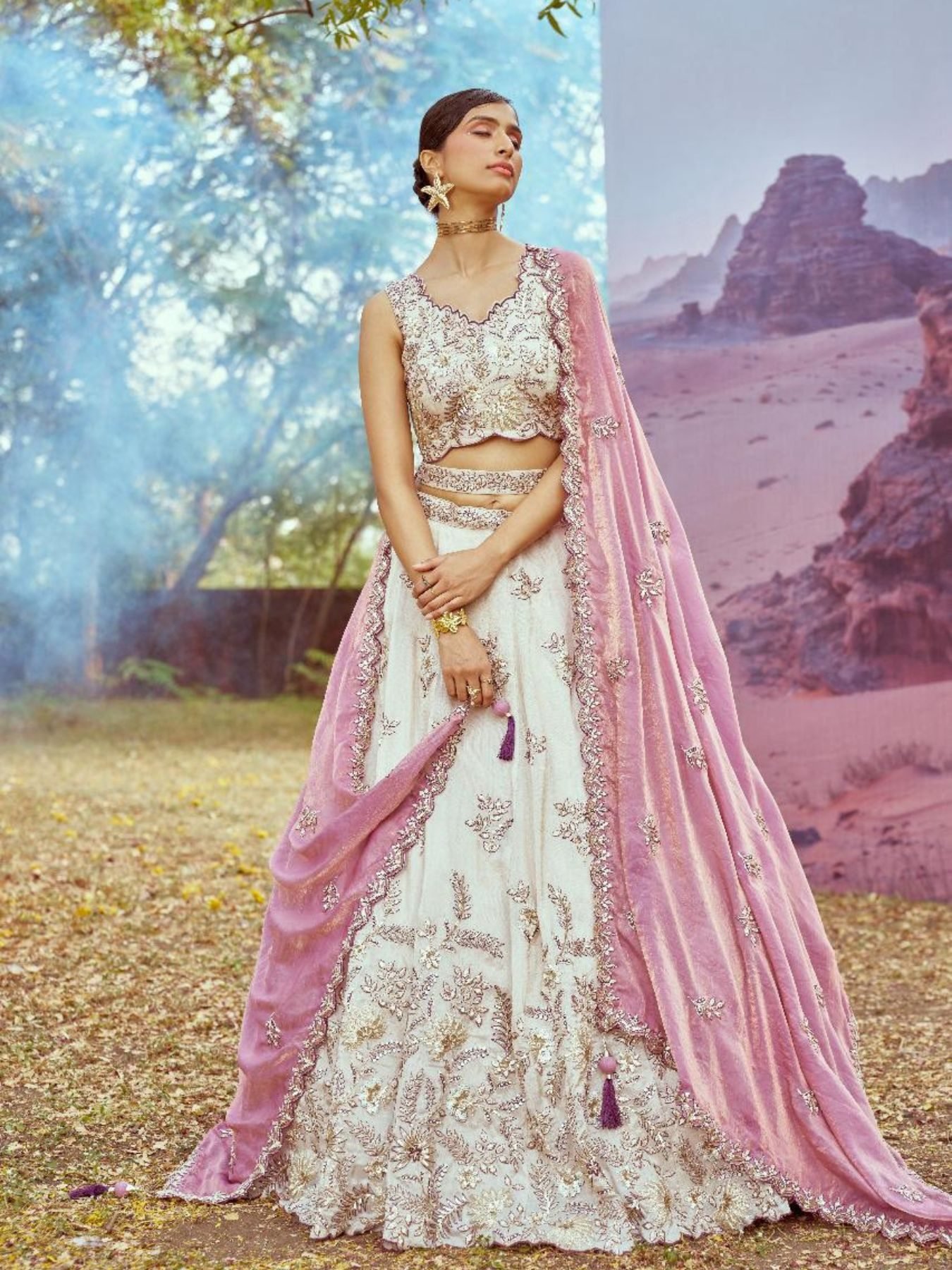 Premium Cream Viscose Lehenga Set with Embroidery Clothing Wholesaler Textile Exporter and Wholesale Designer Wear