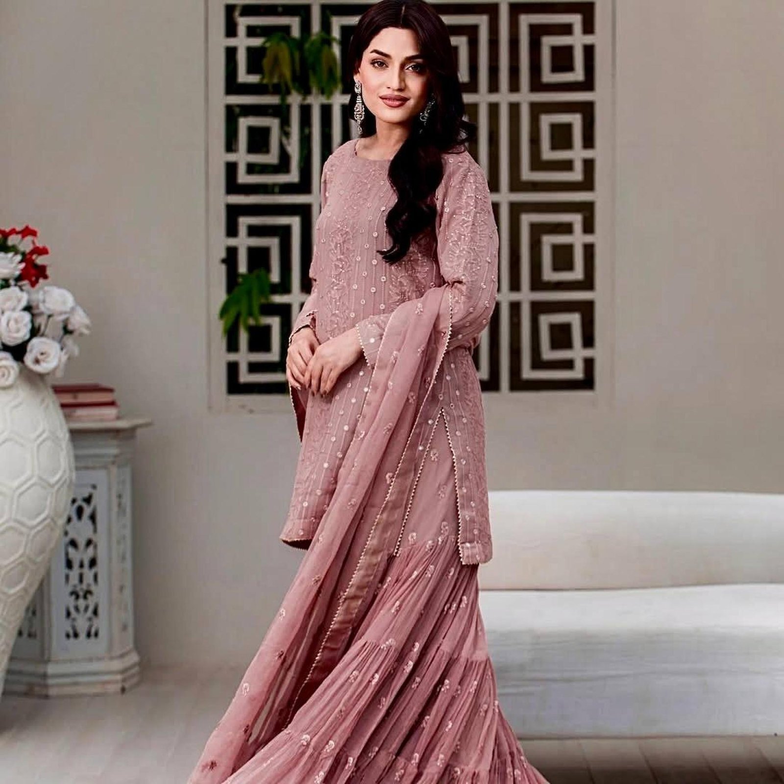 Plazzo Fabric: Heavy Crush Faux Georgette with 3mm Sequence Embroidery Work